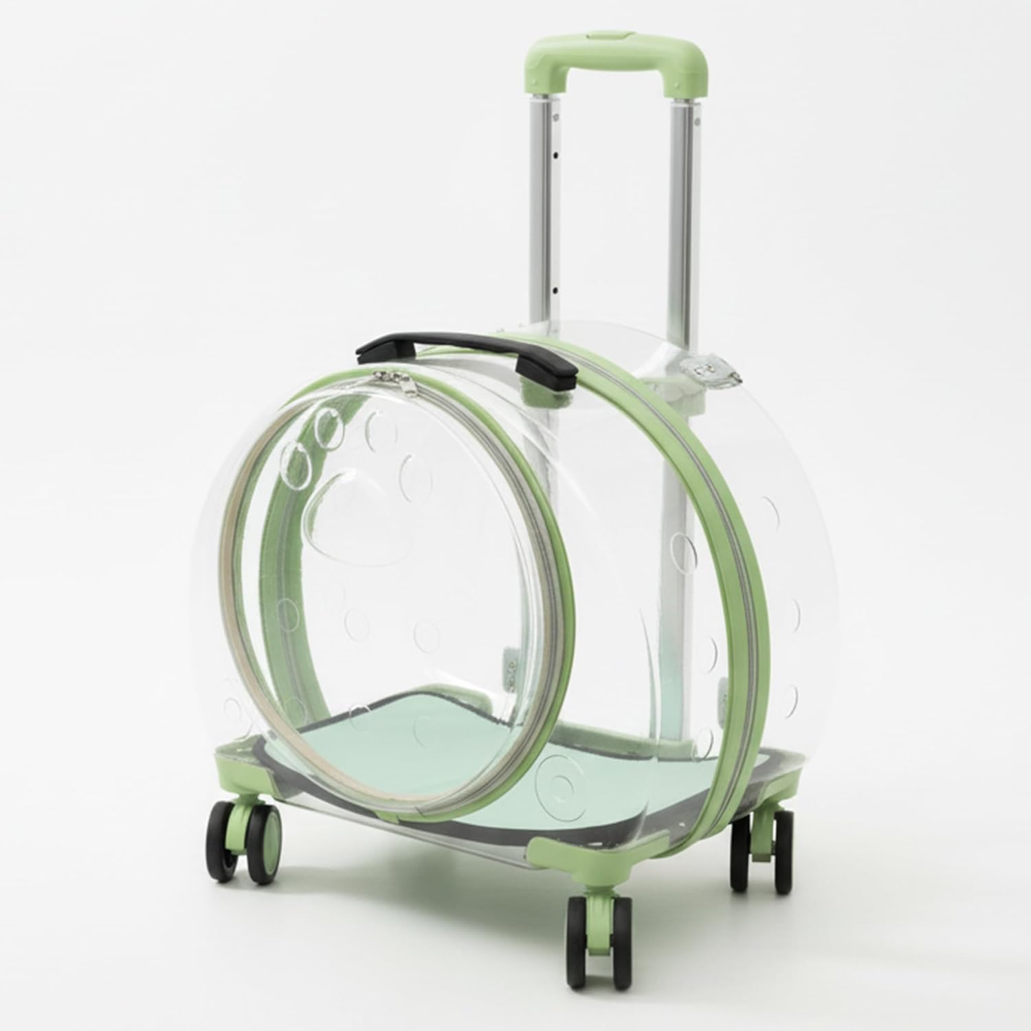 About this item 【3-in-1 Travel-Friendly Design】:Use it as a backpack, rolling pet case, or shoulder tote. With a telescoping handle, padded strap, and sturdy grip, this travel-friendly cat and dog carrier adapts to every journey. At only 6.2 lbs, the collapsible pet carrier with quiet spinner wheels makes outdoor trips effortless. 【Clear View & Comfort】:The see-through hard shell helps reduce stress by letting pets enjoy a panoramic view of their surroundings. A great alternative to bulky strollers or heavy crates, this clear view puppy bag keeps your furry friend calm during daily walks or travel. 【Ventilated & Interactive】:Six airflow vents plus a front opening window allow you to feed or comfort your pet anytime. Designed as a secure yet portable small dog travel crate, it’s perfect for vet visits, road trips, or camping adventures. 【Soft & Removable Mat】:Comes with a padded, removable mat that keeps cats, dogs, or bunnies cozy on the go. Easy to clean and reusable, ensuring lasting comfort whether you’re commuting, hiking, or relaxing outdoors. 【Spacious & Travel-Ready】:Sized at 17.7"L x 10.6"W x 15.7"H, this roomy pet backpack fits pets up to 20 lbs. Protective film prevents scratches, while its compact build makes it suitable for car rides, under-seat airline travel (check dimensions with airline), and outdoor journeys. › See more product details