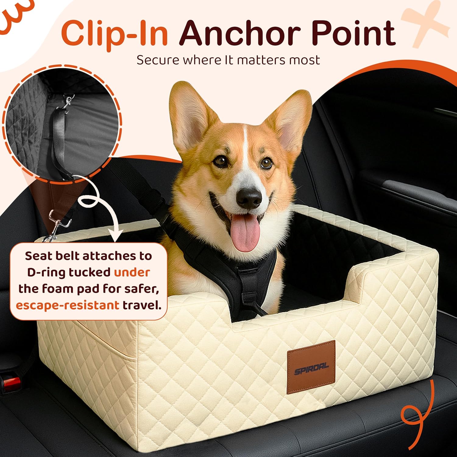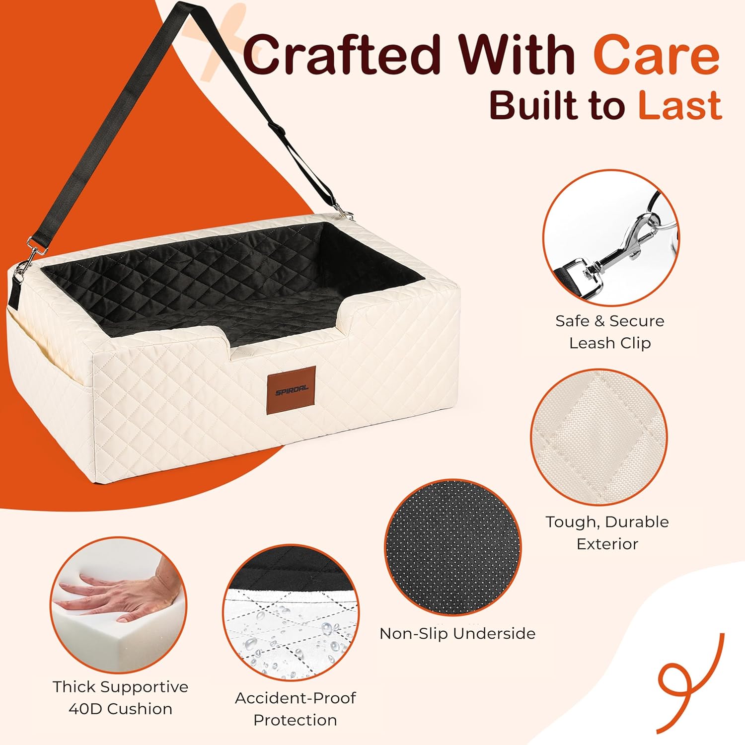 About this item Comfortable Support for Every Journey: This dog car seat is built with a 4‑inch 40D foam cushion and soft interior. It’s spacious enough for one large dog (up to 60 lb), a medium dog or two small dogs—serving as both a booster seat and resting spot. Built‑In Safety Features: Two adjustable leashes anchored beneath the cushion secure your pet to the seat. Seat‑belt loops and a headrest strap keep the car dog seat in place, while the non‑slip base reduces shifting during turns or stops. Durable and Easy to Clean: Made with tough 600D Oxford fabric and a water‑resistant lining to handle spills and dirt. The zippered cover removes for machine washing, and reinforced stitching adds strength for regular use. Universal Fit & Multi‑Use: Adjustable straps and seat‑belt loops allow quick installation in sedans, SUVs and trucks. Doubles as a portable dog car bed or pet carrier at home, while traveling or on camping trips. Protective Packaging: Foam inserts are vacuum‑sealed separately from the outer cover. Allow the foam to fully expand and follow the included installation guide for setup. › See more product details