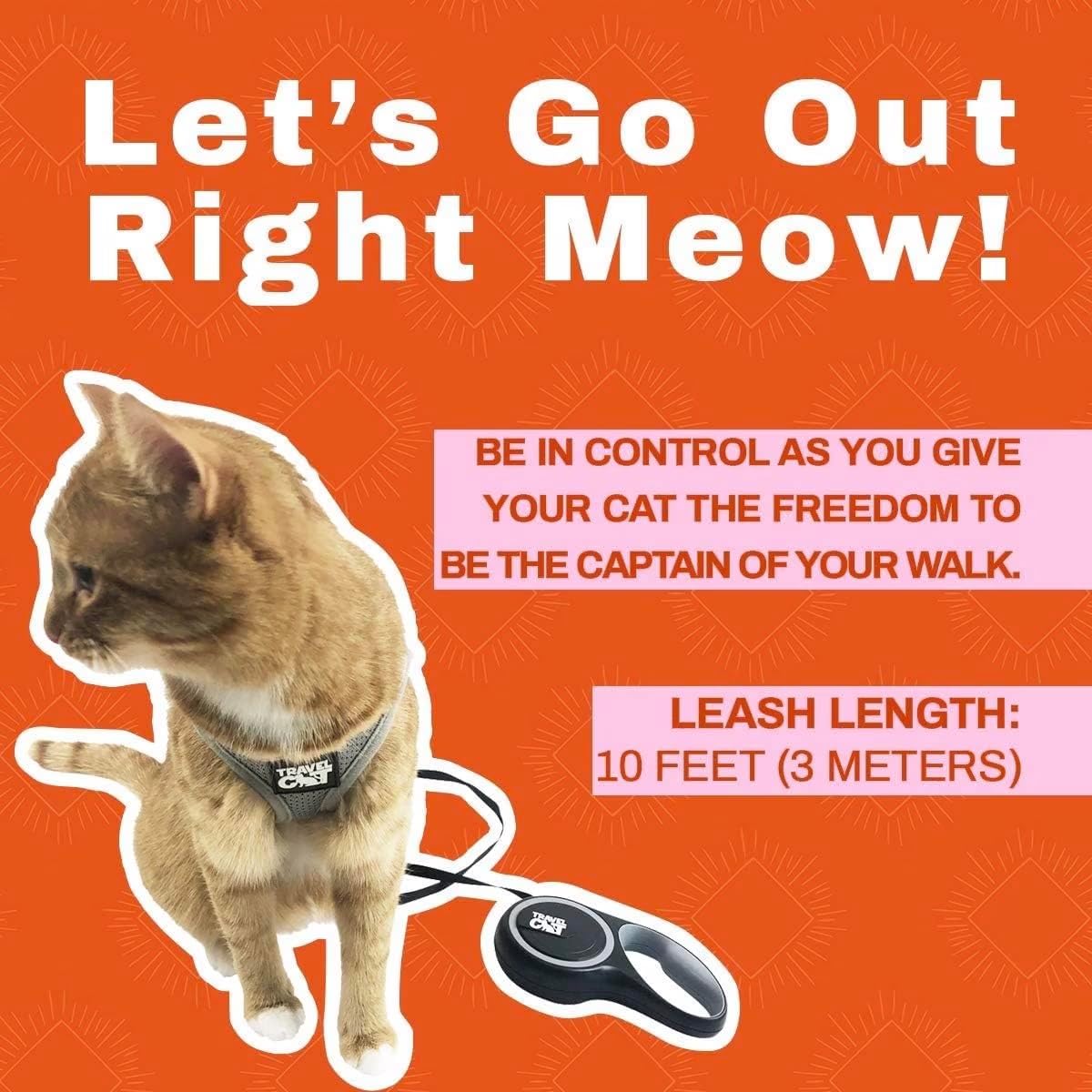 About this item RELIABLE RETRACTABLE CAT LEASH : The Travel Cat long leash is specifically created for small, medium, and large cats, allowing them some autonomy while also providing the option to easily bring them back to you as required. Retractable leash large provides a perfect balance between independence and owner control. STRONG ERGONOMIC GRIP OF STRONG RETRACTABLE LEASH : The rubberized handle of this leash retractable is a guarantee against losing your grip, especially when it encounters moisture. Extendable leash design is perfectly tailored to fit your hand, ensuring a comfortable and enjoyable walking experience. SLOW RELEASE/ LOCK BUTTON OF TAPE LEASH : With effortless ease, you can extend the small retractable leash whenever you decide to let your little captain take charge, allowing them the freedom to explore. When the need arises, bringing the heavy duty leash back is just as simple—incrementally retract it to maintain control and ensure a secure return. 10 FEET CORD WITH STURDY SNAP CLIP : Adjust the length of the black leash to let your cat explore things, without you having to worry about them escaping or getting into trouble. The snap clip is made with premium quality metal alloy and features a 360-degree rotation that adjusts to your cat’s next move. 100% SATISFACTION GUARANTEE : In the rare instance that a product arrives damaged, rest assured that we are committed to your satisfaction. We will promptly dispatch replacement items within 10 days of receiving your package, ensuring that you receive a pristine and fully functional product. › See more product details