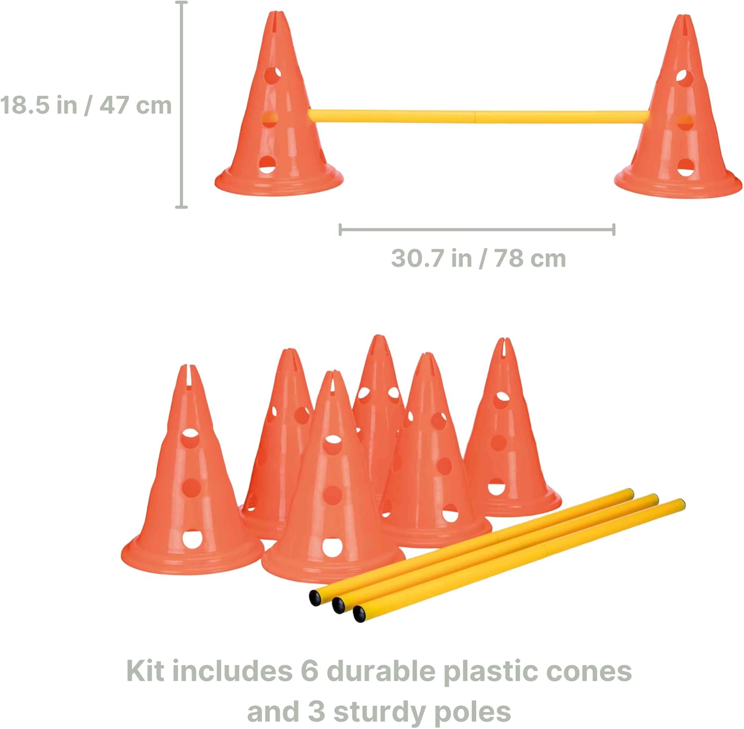 - Included Components: 6 Cones, 3 Hurdle Rods, Training Tips