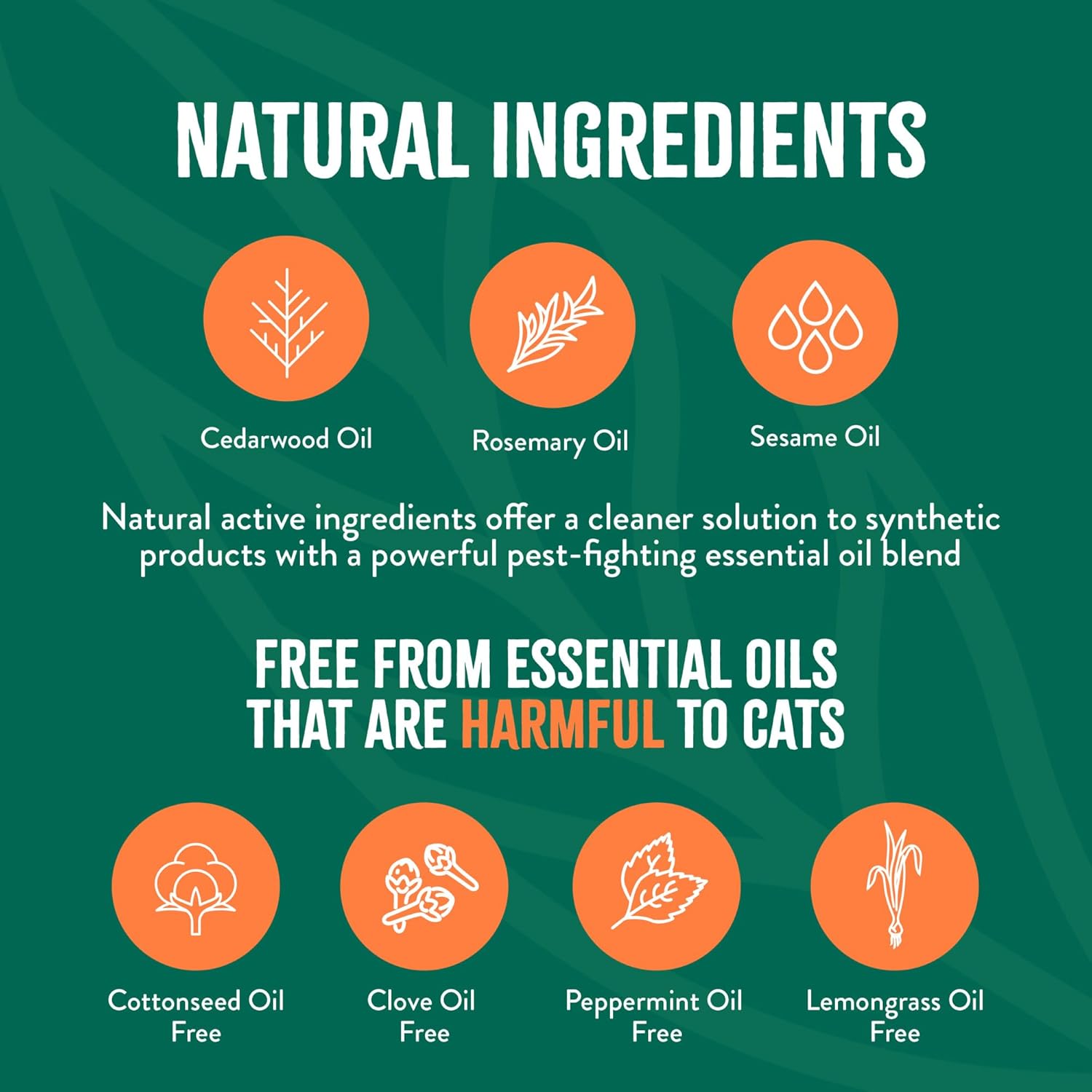 About this item Tough on Pests - No rinse cat shampoo eliminates fleas, mites and mosquitos by contact. Safe for Pets - Formulated specifically for cats with all natural ingredients and an essential oil blend that leaves a fresh, citrus scent. Waterless Application - No need for bathtime, let your cat’s coat dry before they groom themselves. Long Lasting Effects - Lemongrass oil creates a maximum repellent for longer results. A Clean, Safe Solution - For use on cats, safe around all pets, kids, home and yard. › See more product details