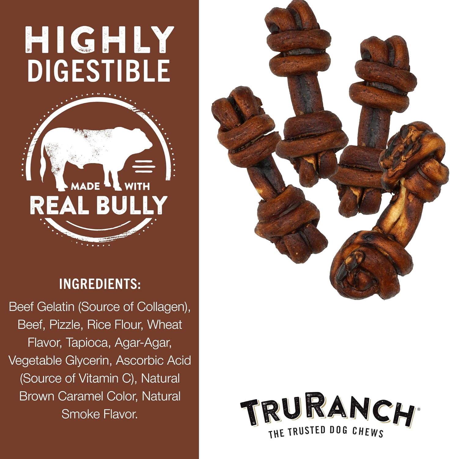 About this item All-Natural, Rawhide Alternative, Collagen Bones 100 % Natural – Rawhide Alternative – Made with Real Bully Dairy Free – Soy Free – Corn Free Highly Digestible – Helps clean teeth, promotes gut health, enhances healthy skin and coat, strengthens joints and muscles! › See more product details