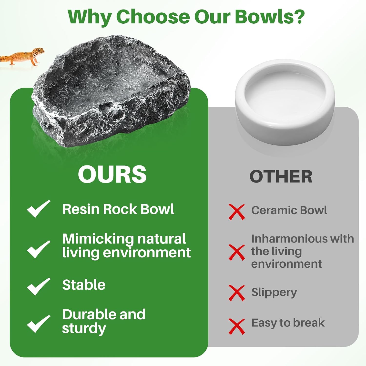 Give your beloved reptile the perfect habitat upgrade with our all-in-one decor bundle! This set includes a realistic resin cave hideout and a practical 2-pack of food and water dishes. Your pet will love the secure, cozy retreat the cave provides, helping to minimize stress and encourage natural hiding instincts. The matching, low-profile dishes are designed to prevent spills, keeping the enclosure cleaner. Made from durable, easy-to-clean resin, this entire set is built for simplicity and pet safety. Transform your terrarium into a thriving and functional home effortlessly. It's the ideal combo for leopard geckos, snakes, bearded dragons, and other small to medium reptiles!