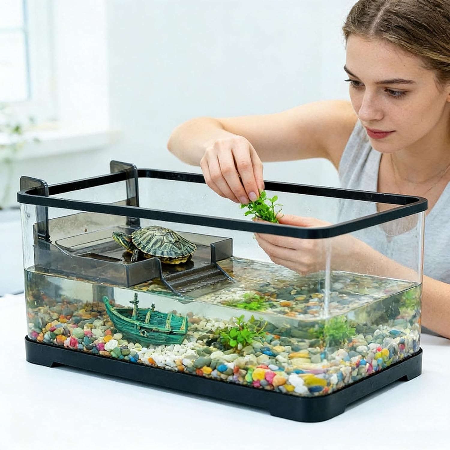 The basking area for aquatic turtle tank provides a suitable resting land for reptiles, including turtles, terrapins, frogs, salamanders, crabs, and tortoises. Designed with stairs, this decoration allows easy access to a dry elevated spot, mimicking a natural living room, hotel, or restaurant setting for your pets. The textured exterior provides secure footing, while the realistic design improves the aesthetic appeal of your tank setup. Ideal for creating a comfortable habitat, this basking area supports the natural behaviors of aquatic creatures, providing them a dedicated space to rest, bask, and flourish in their environment. Suitable for various reptile species, it serves as a important addition to any terrarium, promoting healthier lifestyles for your beloved pets.SpecificationMaterial: PPProduct size: about 22x17x14cm/8.66x6.69x5.51 inchesWeight: about 140gList1 pieces * Turtle sun terraceNote:1. Due to lighting effects and display angles, there may be color differences in the product.2. Due to manual measurement, there may be errors in product size, please understand.