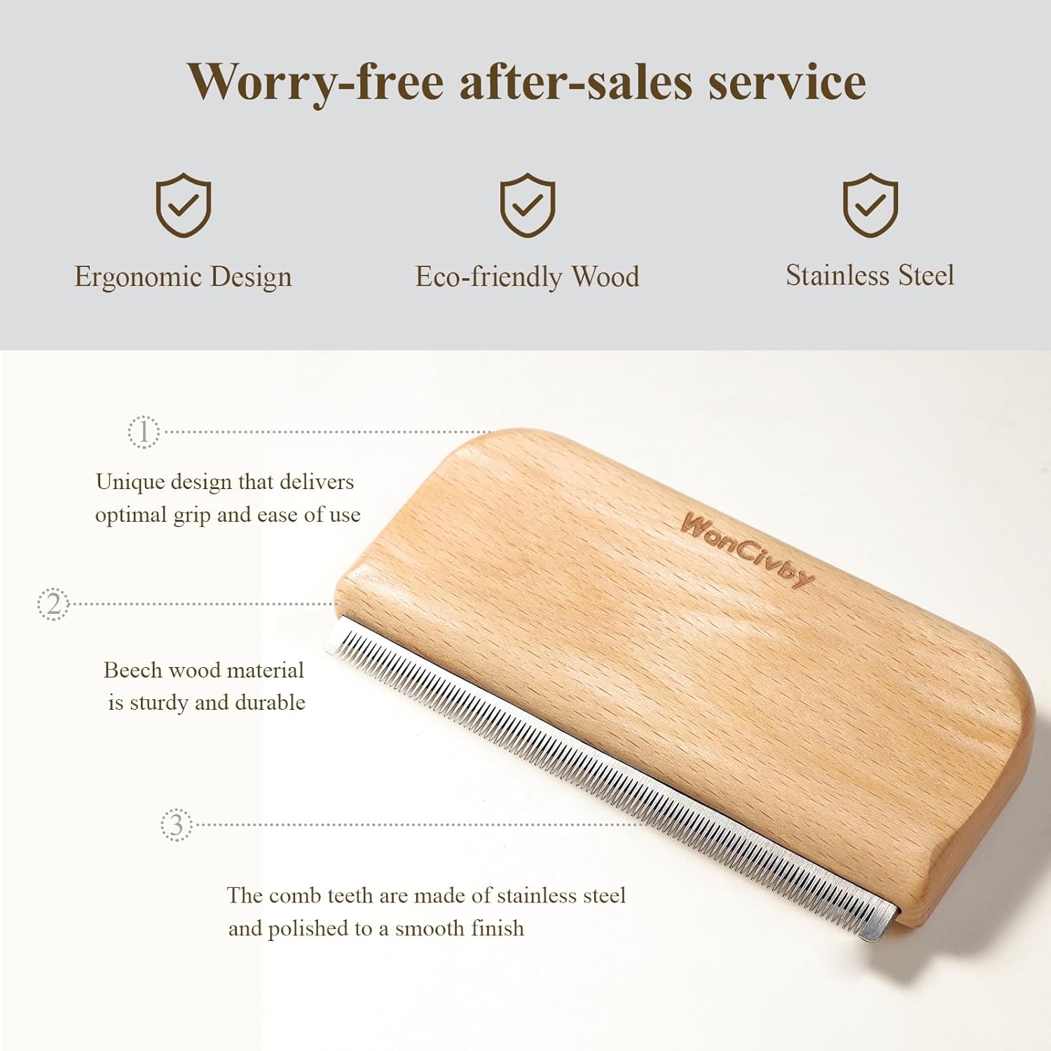 About this item 【Remove up to 95% of shedding undercoat quickly】Using this tool for regular grooming can significantly reduce shedding, saving time and money. Suitable for cats, dogs, and horses. The scratch-resistant bristles protect your pet's skin while promoting blood circulation. 【Comfortable usage experience】Regular combing can easily remove dead hair layers, prevent hair from flying, and keep the home clean. Cleaning fleas and dirt from hair helps prevent pet hair from tangling and promotes healthy, shiny hair. 【Ergonomic Design】Double-sided curved ergonomic handles, provide a effortless and comfortable grip, made with a smooth wood surface painted. Perfectly fits human and pet hands/body. Stainless steel bristles are very durable and easy to clean. 【Save Money + Convenient to Use】Reduce expensive pet grooming salon fees. Perfect pet hair comb. Very easy to use, suitable for dogs, cats, and horses of all sizes. With pet hair remover, save time, effort, and money. 【Lifelong After-Sales Service】Thank you for using the wancivby pet hair brush. If you encounter any issues while using the product, we will provide you with satisfactory after-sales service. › See more product details