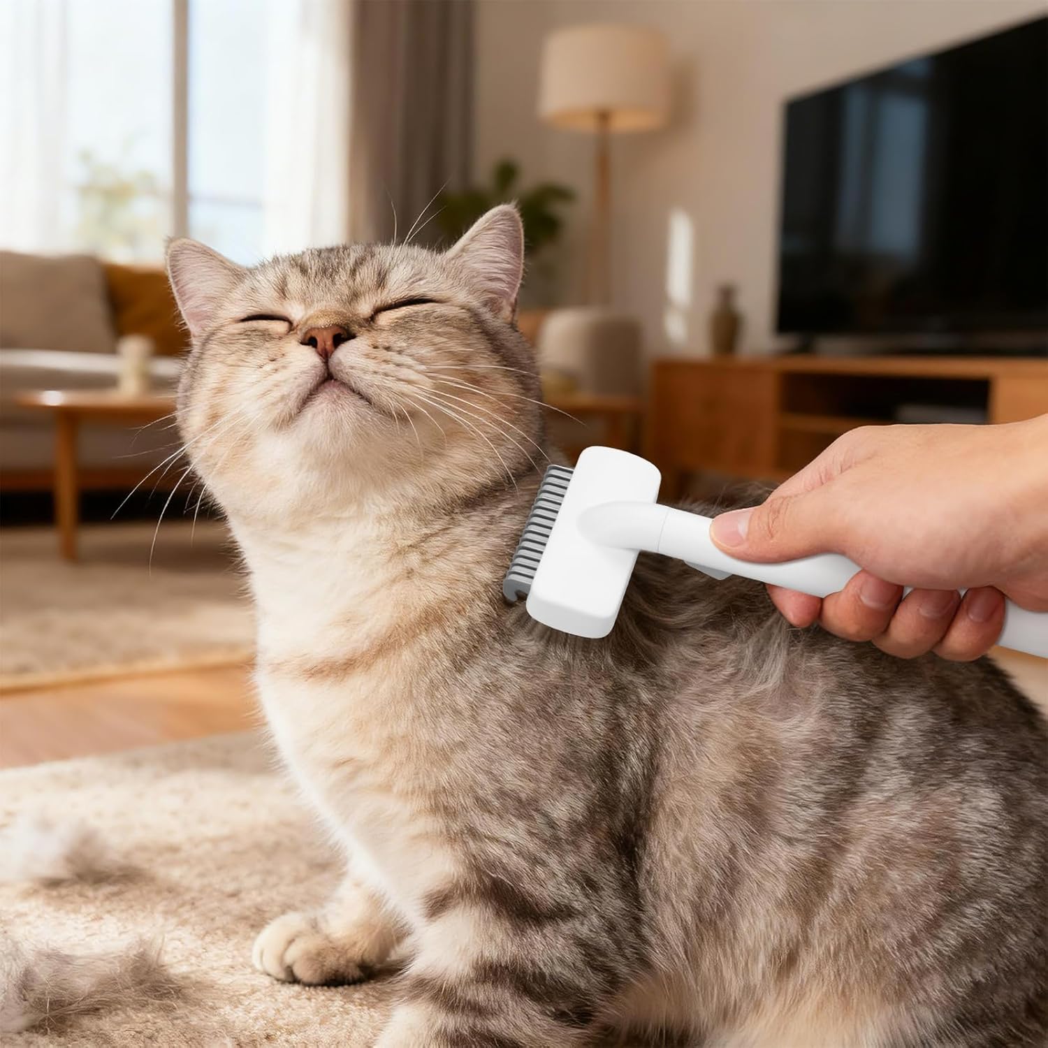 About this item Safety and Comfort - Crafted from premium stainless steel and ABS, the Cat Brush features rounded teeth for a comfortable and safe grooming experience Undercoat Brush - This detangling comb is specifically designed for cats and dogs with prone-to-tangle coats. It glides effortlessly through mats without irritating or scratching the skin, making it a beloved grooming tool for pets Effectively Removes Loose Hair - This pet comb eliminates loose hair, reducing shedding by 90%. It easily tackles stubborn mats caused by dirt and tangles, restoring your pet's coat to a smooth and healthy state while keeping your home cleaner One-Touch Cleaning Design - After grooming, simply press the handle button to automatically eject hair for effortless cleanup Multi-Purpose Use - Ideal for thick-coated cats and dogs, this brush also delivers outstanding results for rabbits, ferrets, guinea pigs, and more, keeping your companion's coat healthy, smooth, and tangle-free › See more product details