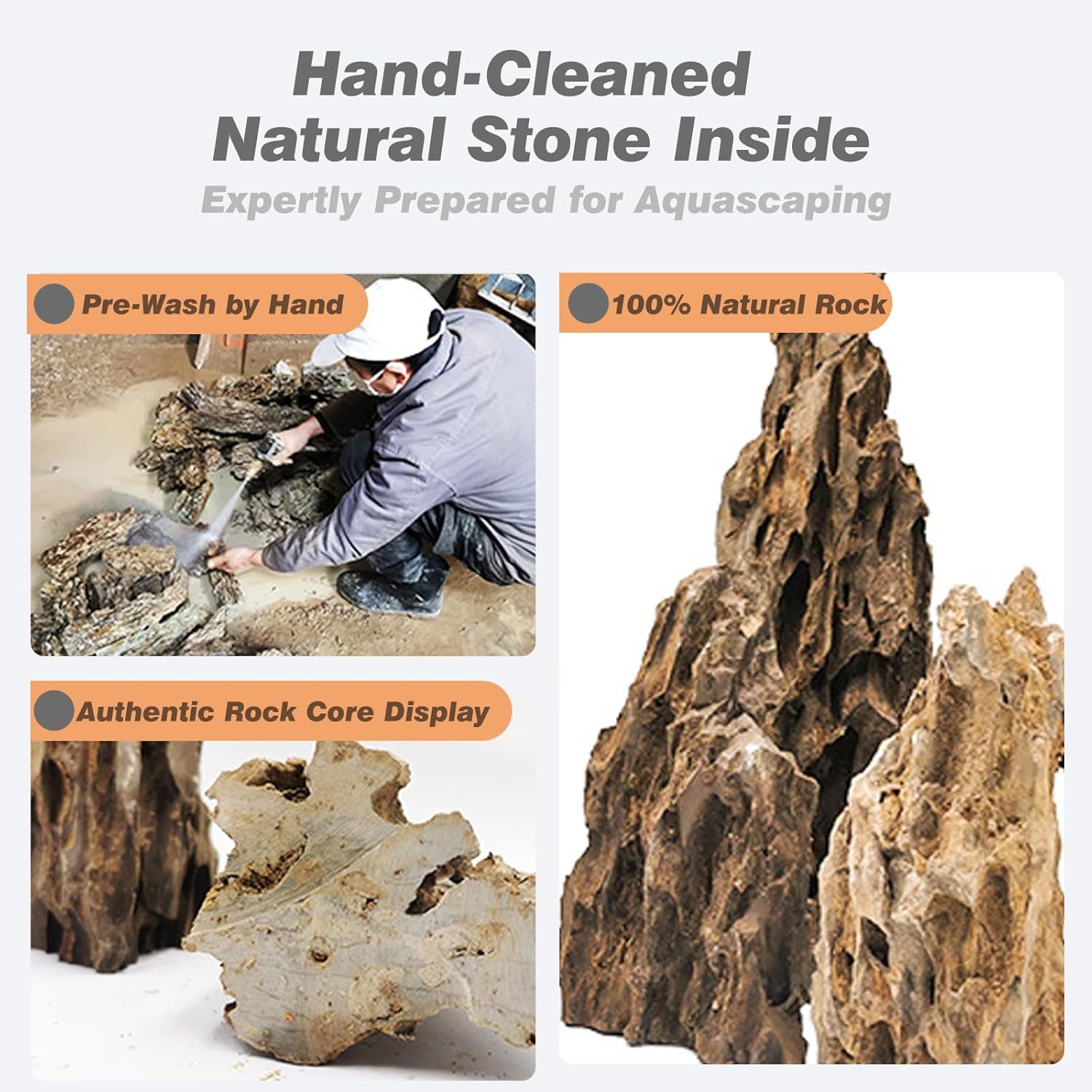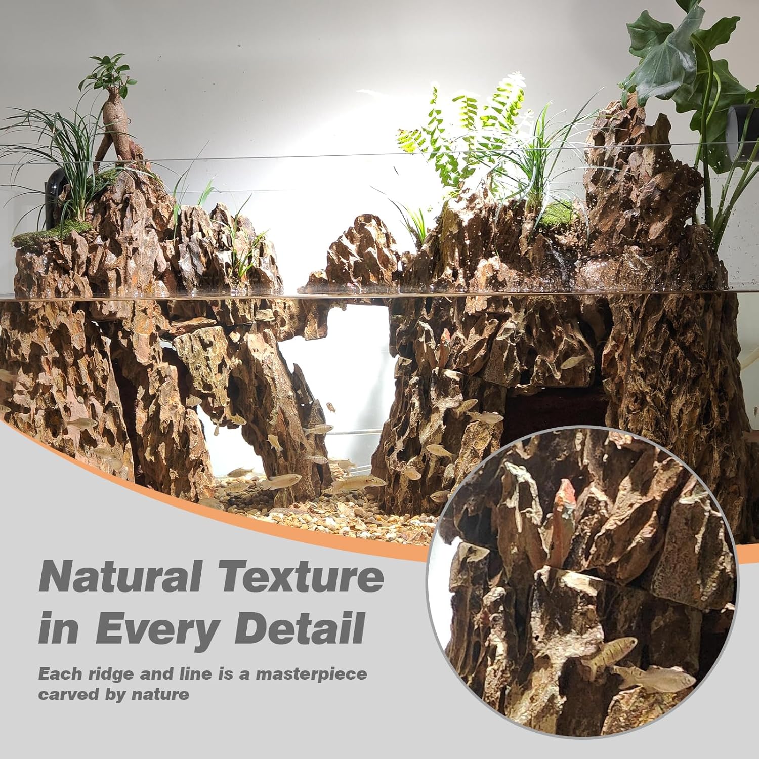 ⛰Naturally Textured & One-of-a-Kind: Dragon Stones, also known as Seiryu Rock, is a premium natural aquarium stone. Its honeycomb pores and layered formations give each piece a unique character, ideal for creating dragon rock aquascaping or realistic fish tank decor ⛰Versatile Aquascaping: Perfect for small planted tank substrates or large-scale aquascaping rocks, offering endless creative possibilities. Its natural texture adds visual depth and transforms aquariums, terrariums, and reptile habitats into breathtaking underwater or terrestrial landscapes. ⛰High Quality & Safe: Each piece is carefully handpicked and pre-washed, then packaged to meet top quality standards. Durable and hard, this aquarium rock does not alter water chemistry and helps maintain stable pH, making it safe for freshwater aquariums, saltwater tanks, shrimp tanks, turtle tanks, and reptile terrariums. ⛰Habitat & Shelter: Beyond aesthetics, Dragon Rocks provides natural hiding spots and shelters for fish, shrimp, turtles, reptiles, and amphibians. Natural rock reduces stress, encourages natural behavior, and serves as an anchor point for aquatic plants—making it both decorative and functional as fish tank decorations. ⛰Endless Creative Possibilities: Use Dragon Stone aquascaping stone to create mountains, caves, underwater gardens, or artistic displays. Combine with aquarium sand, lava rock, gravel, or plants for DIY aquascape setups, making it an excellent choice for both beginners and professional aquascapers. › See more product details