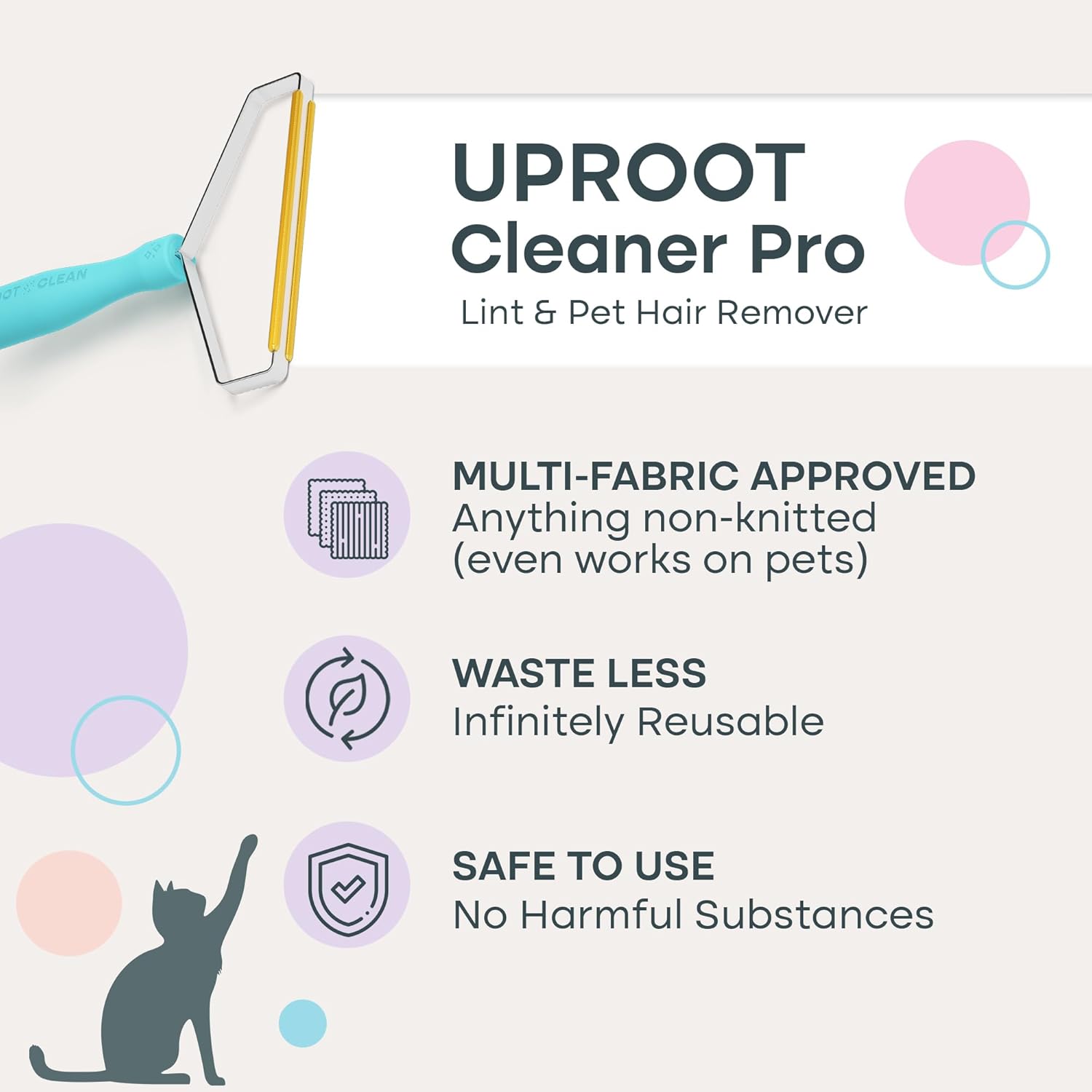 About this item GETS EVERY STRAND OF HAIR AND FUR: The Uproot Cleaner Pro saves you energy without cutting corners. The pet fur remover reaches even the most embedded follicles, pulling them out with an easy swipe! SPECIAL MULTI-FABRIC EDGE: Finally! A pet hair removal tool that works on all non-knit fabrics without damaging them! You can even use our pet fur remover products directly on your pets! INFINITELY REUSABLE DESIGN: The Uproot Clean Pro Pet Fur Remover requires no batteries, sticky rolls, or vacuum bags, helping you reduce your environmental footprint while also sparing your budget! A TRULY SATISFYING TIME-SAVER: Easy, quick, and fun, you simply pull the cat fur remover across the affected area. Remove the collected "treasures", throw them away, and continue till you're done! DEDICATED TO PET PARENTS ACROSS THE WORLD: All of our cat and dog fur remover options make every pet owner's life easier, saving pet owners time, effort, money, and frustration! › See more product details