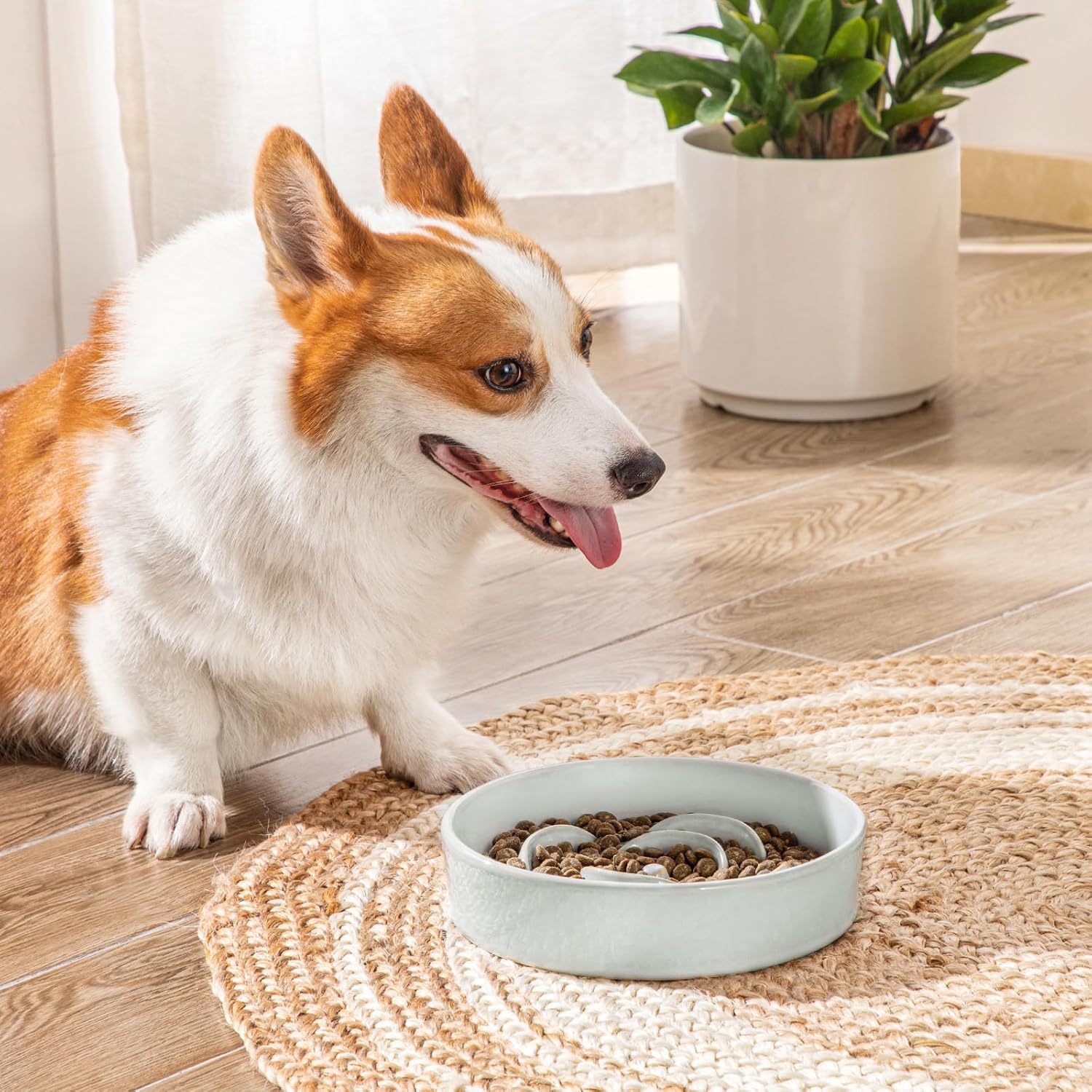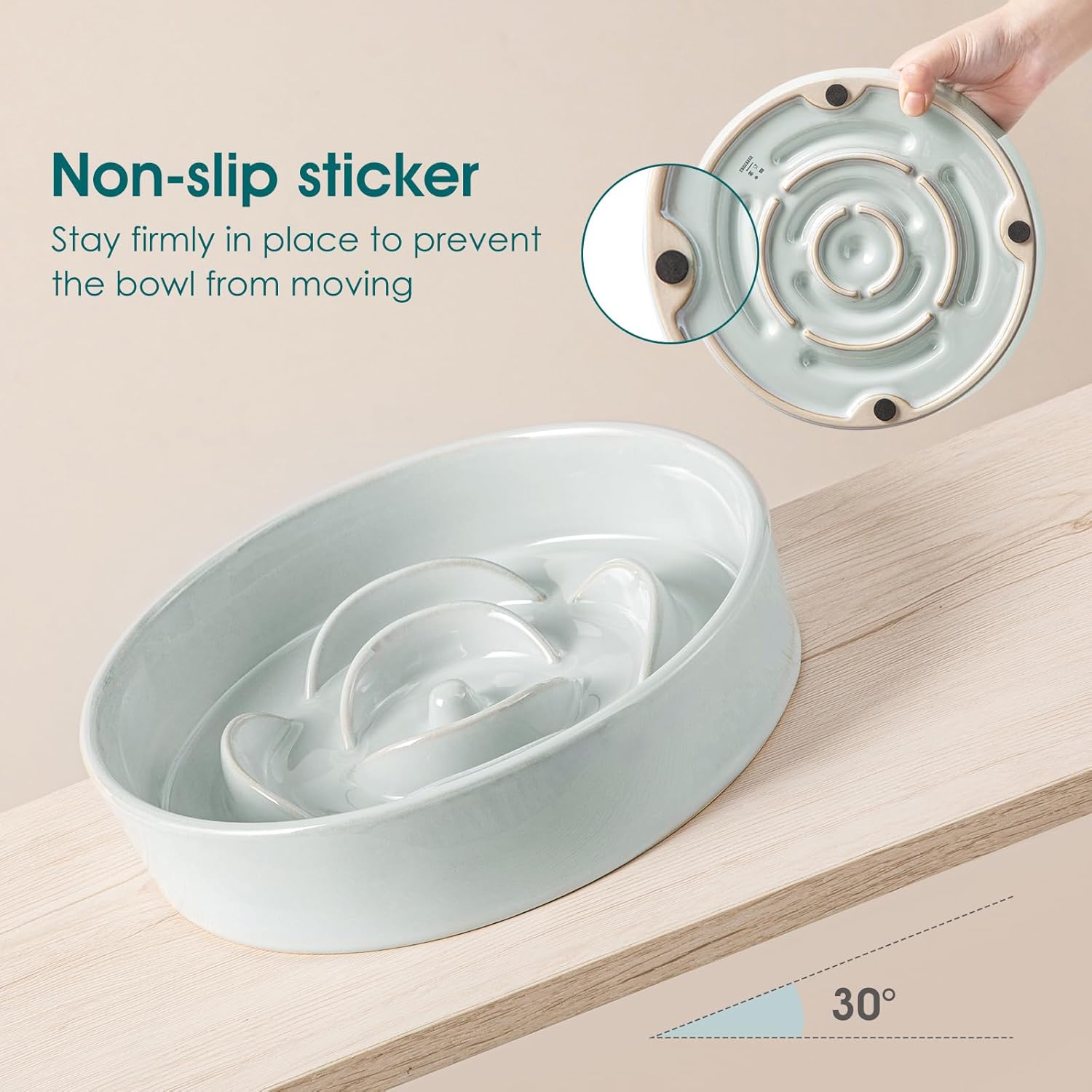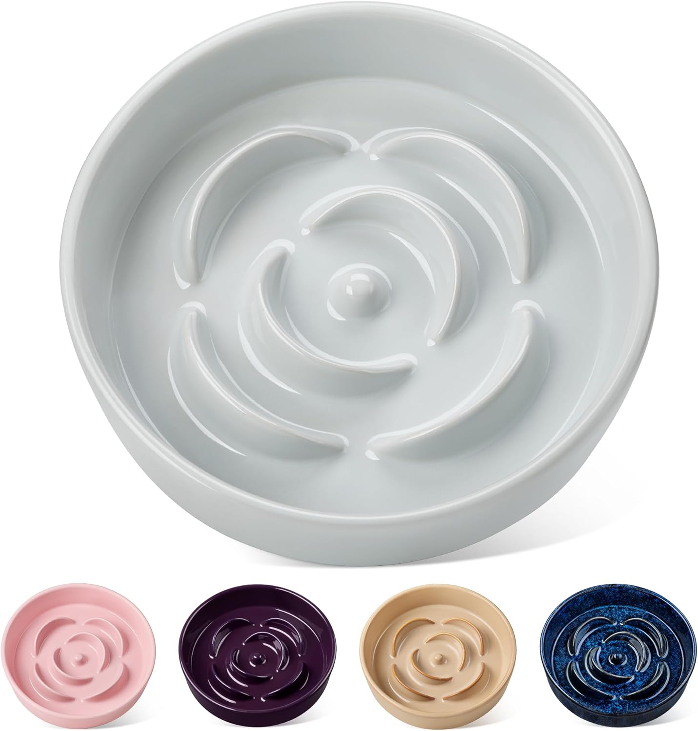 About this item Which Breeds are Suitable: This ceramic slow feeder dog bowl is perfect for Medium pets like cats and Medium dogs, including Chihuahuas, Pomeranians, Maltese, Teddy Bears, Shih Tzus, and Pugs. With a 8.5-inch diameter, it holds 1.5 cups of dry food or 32oz of water, featuring slow-feeding ridges to promote healthier eating habits. Made of durable, pet-safe ceramic, it’s ideal for portion control and preventing bloating in Medium breeds. Healthy Ceramic Slow Feeder: Made from 100% non-toxic ceramic, this bowl is a safer alternative to plastic. Its smooth, scratch-resistant, and stain-resistant surface resists dirt buildup and prevents black chin stains—keeping your dog's face cleaner and healthier. Plus, ceramic's non-porous material ensures easy cleaning with no lingering odors or residue. Stops Chewing, No Plastic Chips!: Plastic slow feeder dog bowls crack and chip easily when dogs chew on them—and many do! Our ceramic slow feeder dog bowl solves this problem with a tough, bite-proof design that won’t break or shed harmful plastic pieces. Safer, sturdier, and built to last, it’s the worry-free choice for chew-happy dogs! 15X Slower Eating: vancasso slow feeder dog bowls clever design with ridges and a maze pattern slows down eating by 15X, turning meals into a fun, engaging challenge. Helps prevent indigestion, choking, and obesity while keeping your dog mentally stimulated. A smarter, healthier way to eat! 6X Heavier Than Plastic: Made of sturdy ceramic (2.4 LB, 6x heavier than plastic), it prevents tipping and spills for mess-free dining. The bottom of the ceramic slow feeder dog bowl with non-skip stickers keeps the bowl firmly in place. A Clean solution for playful eaters! › See more product details