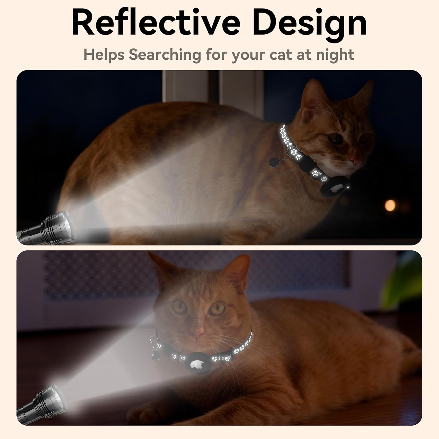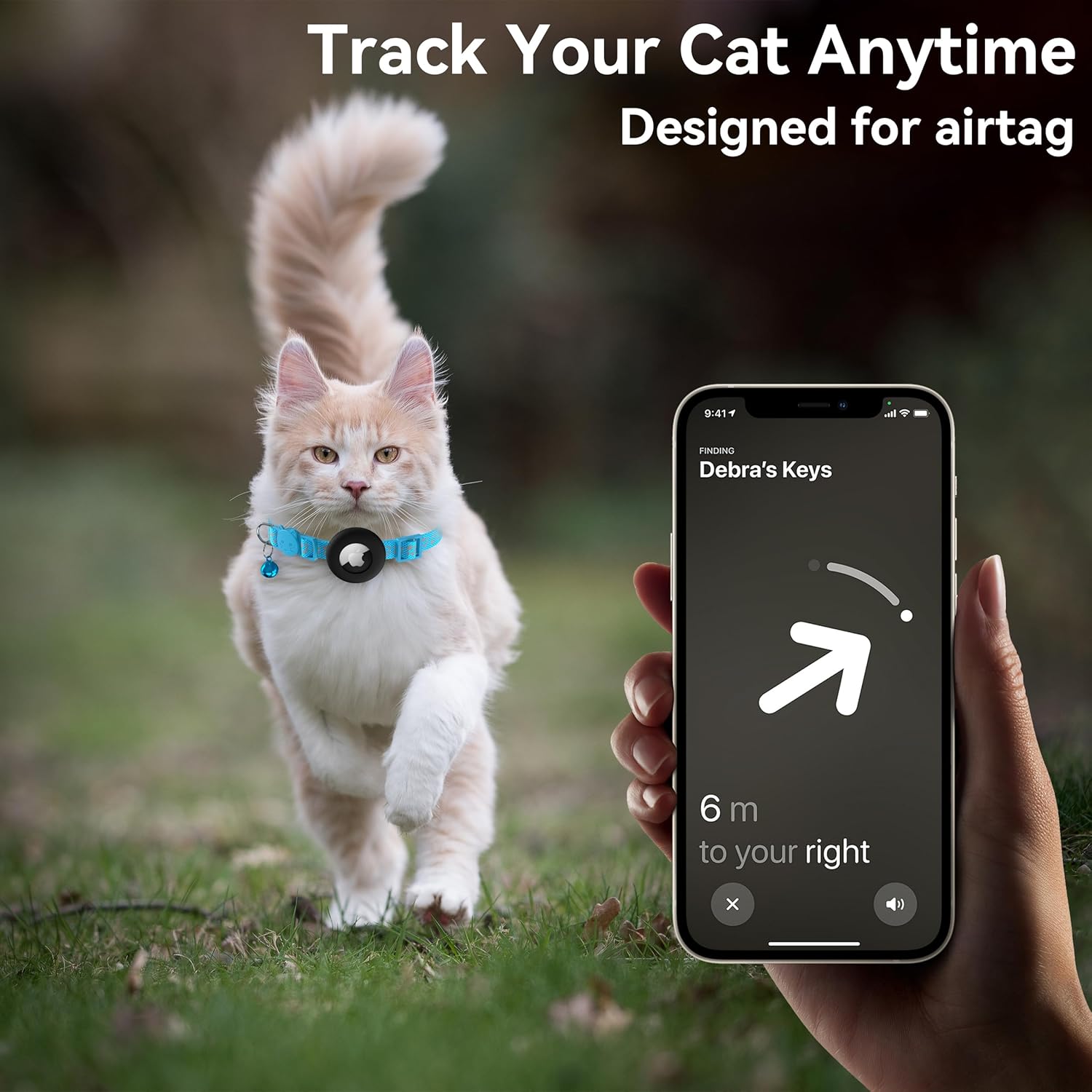 Vanjua 2 Pack Airtag Cat Collar Breakaway with Bell, Reflective Kitten Collar with Air Tag Cat Collar Holder Case for Girl Boy Cats, Pet Supplies Accessories Compatibility: only compatible with Airtag Packaging: 2 X Airtag Cat Collar Breakaway with Bell Specification: Color: Black, Blue Features: *Easily Track Your Cat:Secure Airtag Collar – Featuring an elastic Airtag holder, this reflective cat collar safeguards your Airtag tightly—preventing it from falling off or dangling loosely. Exactly what you need to effortlessly locate your pet anytime, anywhere, while keeping the Airtag well-protected. *Comfortable & Fur-Friendly Material:Crafted from reflective nylon (not silicone), this kitten Airtag collar is gentle on your cat’s skin—no fur rubbing, no irritation, and zero discomfort for your pet’s neck. *Minimalist & Lightweight Design:Adjustable from 8.66 to 13.78 inches, this cat Airtag collar lets you easily find the perfect fit for your feline. With a lightweight Airtag holder and 0.4-inch wide strap, your cat stays comfortable even during long wear—no more worrying about them clawing at or chewing the collar.