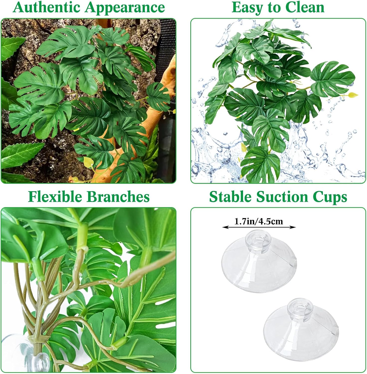 • Durable & Realistic Made from high-quality materials, VCEPJH reptile tank plants are specially designed for reptiles. Available in multiple colors, leaves for reptile tank create a natural habitat that promotes comfort for your leopard geckos, chameleons, and other reptiles