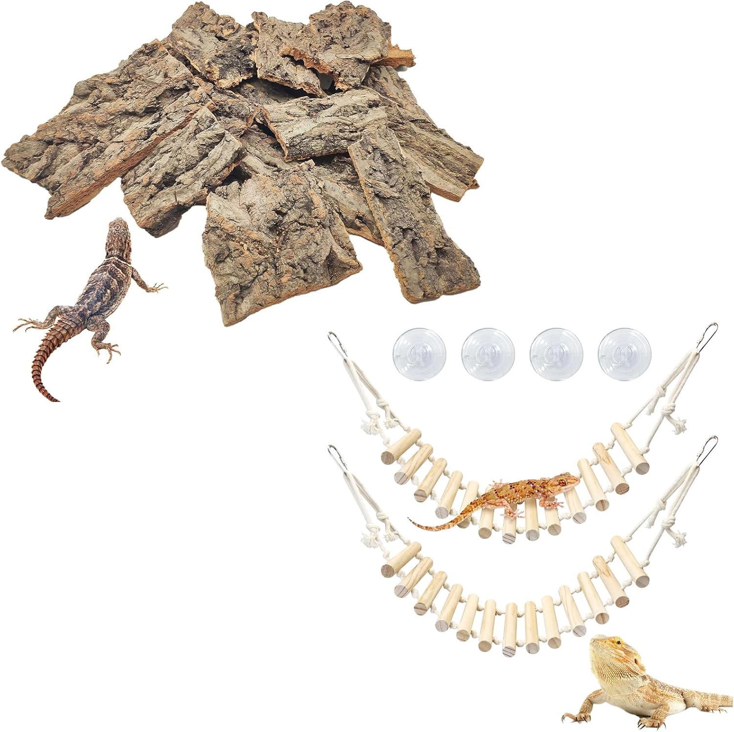 • Multiple Ways of Use You can mount wooden bridge for reptile at any height of the tank with suction cups,it is safe and sturdy. Bearded dragon climbing can be used as a ladder, platform or bridge. A durable decorative accessory, helps to enhance sense of balance
