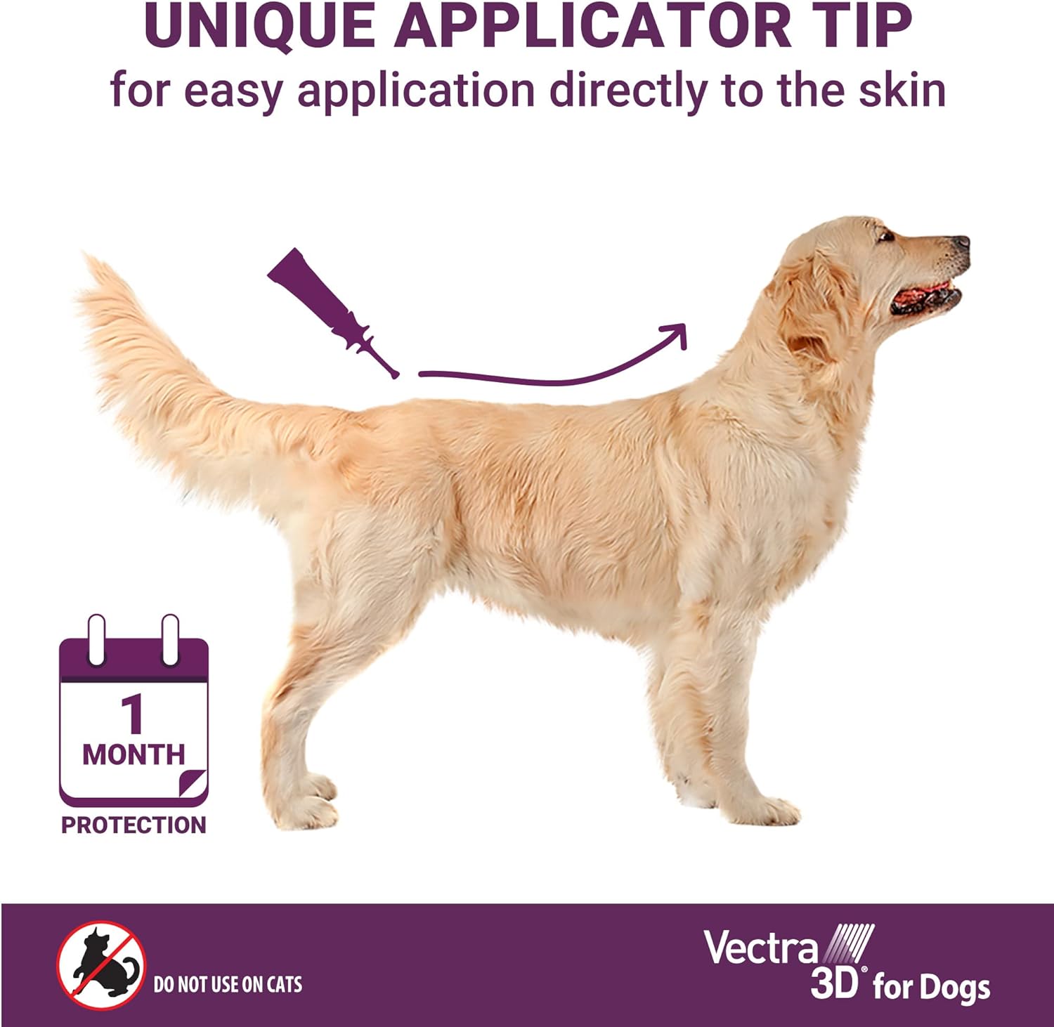 - Directions: HOW TO APPLY 1. Ensure your dog is dry before applying the product, and ensure your dog remains dry for 24 hours after application. The dog should be standing while the product is applied. Application of product on dogs must only be done indoors. 2. Remove the applicator tube from the package. 3. Holding the tube upright, pointing away from you and your dog’s face, place your thumb and index finger around the applicator tip under the large disk. With the other hand, grasp the stem of the applicator tip above the smaller disk. Press down firmly on the small disk until both disks meet, piercing the seal. 4. Using the applicator tip, part the hair at the base of the tail and begin applying the product onto the skin in a continuous line from the base of the tail along the center of the back all the way up to the shoulder blades, squeezing the applicator tube until it’s empty. Avoid superficial application to the dog’s hair. Discard the empty applicator tube as outlined in the Storage and Disposal section. Repeat every month. For continuous control and prevention of adult and immature flea stages, ticks mosquitoes, lice, mites (excluding mange mites), biting flies, and sand flies, apply product monthly, year-round.