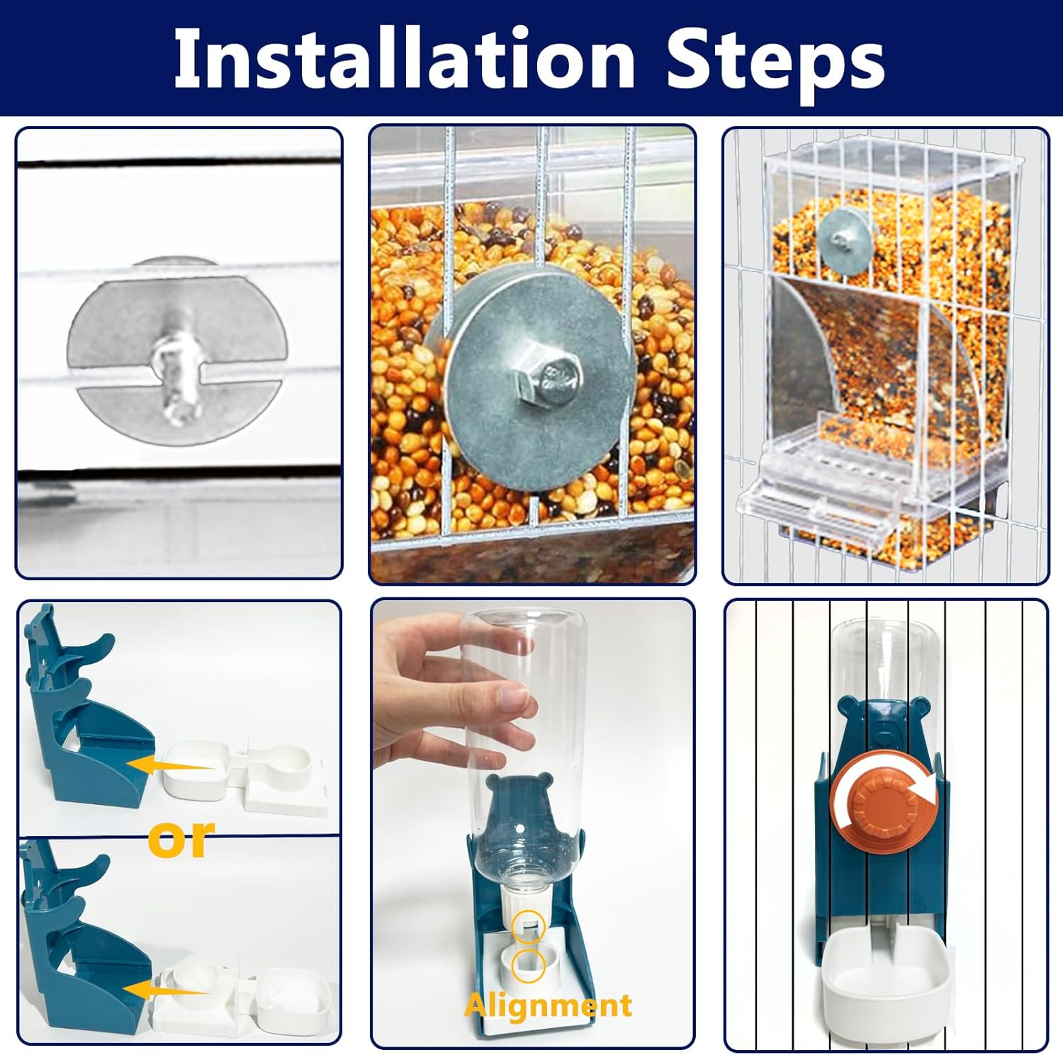 About this item Effortless Automatic Feeding System: Our 2 Pack No Mess Bird Feeder Water Dispenser set is designed for your convenience and the wellbeing of your birds. Featuring a gravity automatic feeding design, this set includes both a seed feeder and a water dispenser. The transparent construction allows for easy monitoring of food and water levels, ensuring your birds are always well-fed and hydrated, saving you time and energy. Easy Installation & Versatile Placement: With no complicated setup required, these feeders can be effortlessly attached to your birdcage using the provided screws. Designed for flexibility, they can be mounted either inside or outside the cage. The feeders also feature an easily accessible top cover for quick food refills without the need for removal, making it an ideal and convenient choice for your beloved birds. Large Capacity for Peace of Mind: Capable of holding approximately 500g of seeds, our feeder ensures that your birds have enough food to last 7-15 days, depending on the bird species. This feature is especially beneficial for bird owners who often travel or have busy schedules, providing assurance that their pets will remain fed and happy in their absence. Large Capacity for Peace of Mind: Capable of holding approximately 500g of seeds, our feeder ensures that your birds have enough food to last 7-15 days, depending on the bird species. This feature is especially beneficial for bird owners who often travel or have busy schedules, providing assurance that their pets will remain fed and happy in their absence. Durable and Safe Materials: Constructed from premium, rigid acrylic and high-quality thick transparent plastic, our feeders are built to last. They are safe, reusable, and designed to withstand the daily activities of your feathered friends. Paired with our commitment to excellent customer service and your satisfaction as our top priority, this bird feeder and water dispenser set is the perfect addition to your bird care routine. › See more product details