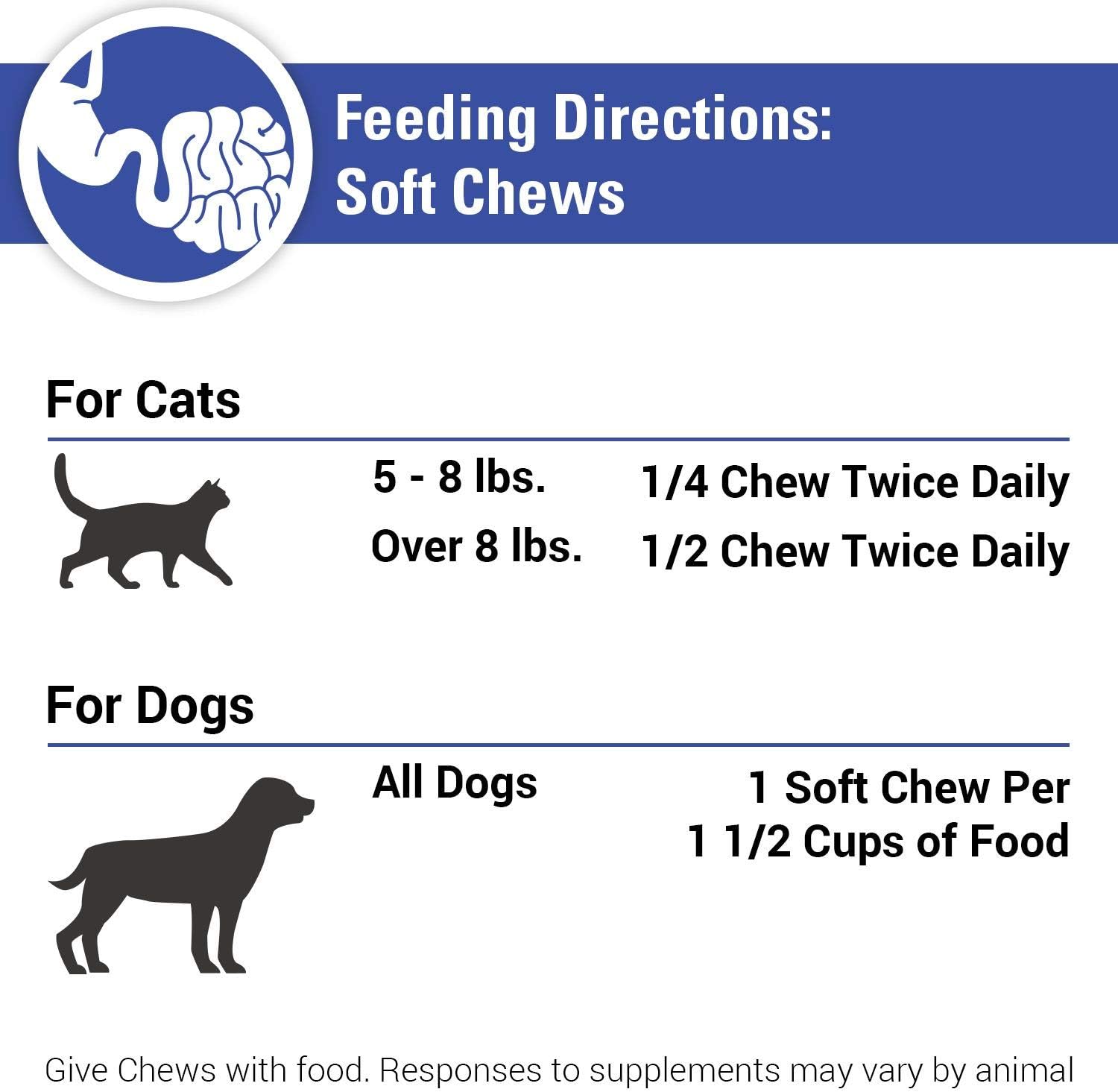 About this item DOG PROBIOTIC HEALTH SUPPLEMENTS: Feel good about feeding your dog or cat these pet health supplements that feature an blend of enzymes, probiotics, cellulose and lipase. Each ingredient helps with the absorption of nutrients while providing beneficial bacteria for optimal gut health. CAT, DOG DIGESTIVE SUPPORT: This premium pet health supplement fuels your dog or cat with healthy enzymes for consistent intestinal balance. Each soft chew dog supplement with probiotic support for cats and dogs, helps with the absorption of nutrients. IDEAL PET SUPPLEMENT FOR STRESS: It’s natural for animals to feel stress when boarding or during grooming. This stress can impact and cause digestive problems in dogs and cats. These veterinarian formulated pet health supplements support the overall gastrointestinal health for dogs and cats. PET HEALTH SUPPLEMENTS: Each dog supplement or cat supplement for digestive problems is veterinarian formulated and recommended so that you can feel good about offering your pet the health supplements he needs to remain active and healthy. PREMIUM PET SUPPLEMENTS: Since 1994, VetClassics has offered a high-quality line of pet health supplements developed by veterinarians and scientists to support care for dogs, cats and horses. Choose from an impressive collection of pet health supplements that address hip and joint support, cardiovascular care, liver and urinary support. › See more product details