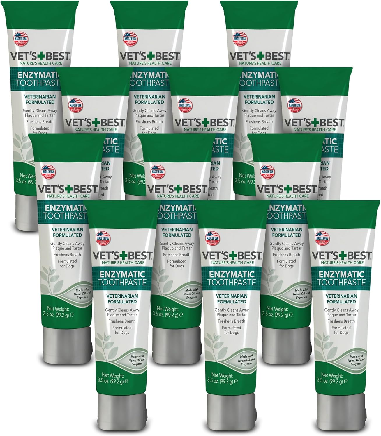 Support your dog’s dental hygiene between cleanings with Vet’s Best Enzymatic Dental Gel Toothpaste. Our veterinarian-formulated mix of key natural ingredients provide antibacterial and antifungal qualities that fight tartar and plaque, promote healthy gums and teeth, whiten and brighten your dog’s smile, and freshen her breath.