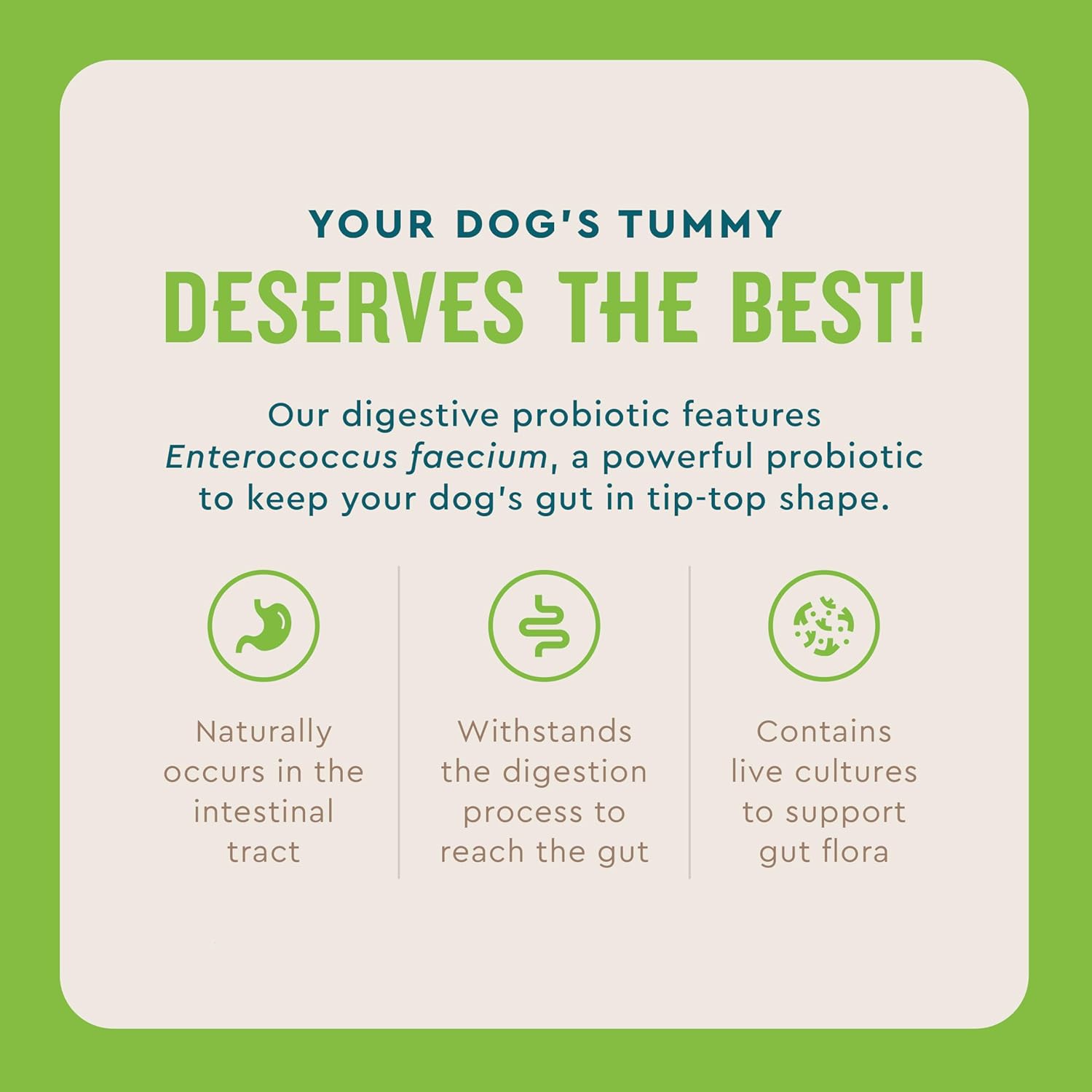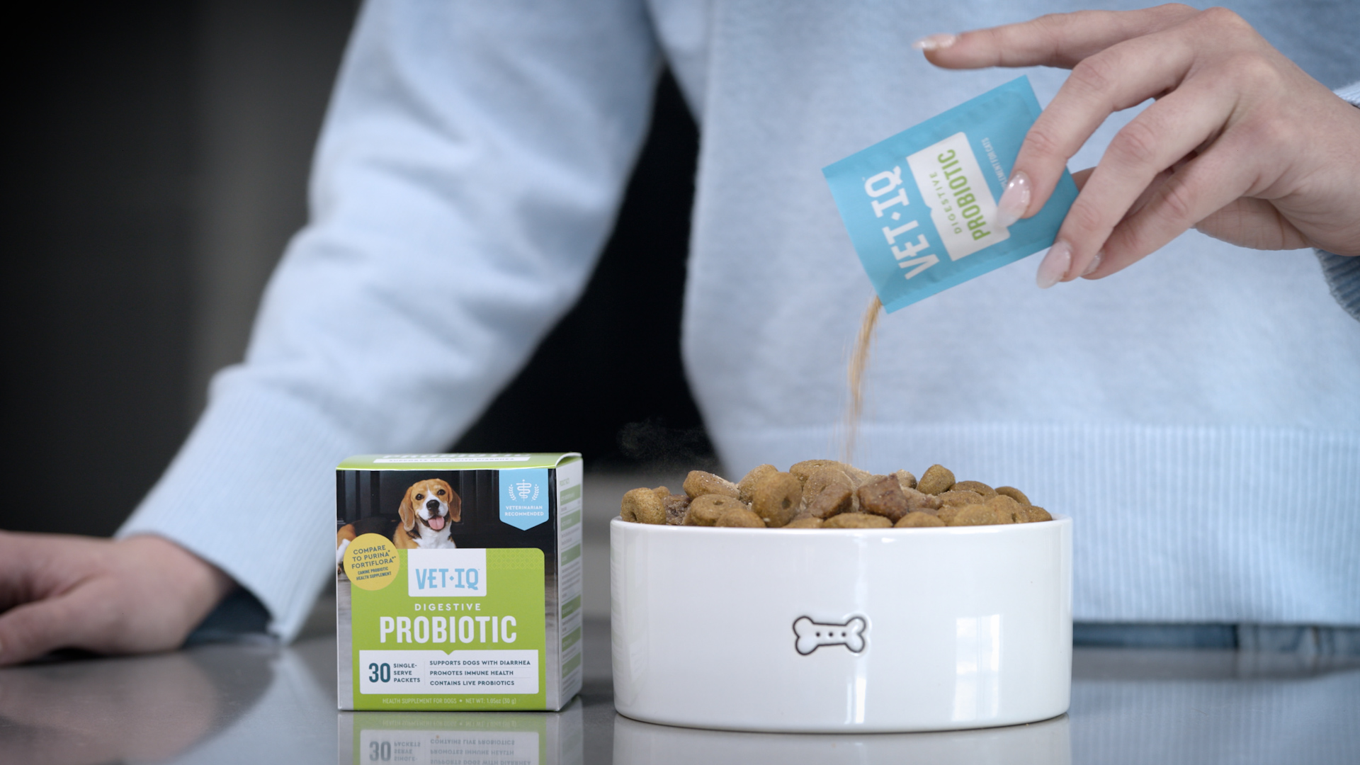 Your dog’s tummy deserves the best! That’s why VetIQ Digestive Probiotic for Dogs is made with live probiotics and other high-quality ingredients to support their immune system and gut health. Formulated with an active probiotic comparable to the leading brand, our daily pet probiotics for dogs is designed to help dogs who experience occasional digestive issues like diarrhea, food sensitivities, or an upset stomach due to antibiotics. Our probiotic powder comes in easy-to-use, single-serve packets, so you can effortlessly sprinkle it directly onto your dog’s food. Each packet is perfectly measured to make sure your dog gets just the right amount of support. Flavored with irresistible chicken liver, each sprinkle of powder is packed with taste, making it a seamless addition to your pet’s routine. These single-serve packets are great as a daily topper on dog food. Your dog will happily enjoy every bite without realizing they’re getting a boost to their gut health!
