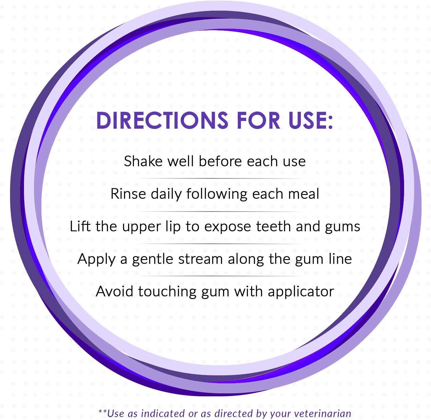 - Directions: Shake well before each use. Rinse daily following each meal or as directed by your veterinarian. Gently lift the upper lip to expose the teeth and gums. Point and squeeze to apply a gentle stream along the gum line. Dentahex Oral Rinse disperses rapidly and completely covers the entire oral cavity, even hard-to-reach areas. Avoid touching gums with the applicator tip to avoid any injury in case your pet moves. Store upright at a controlled room temperature.