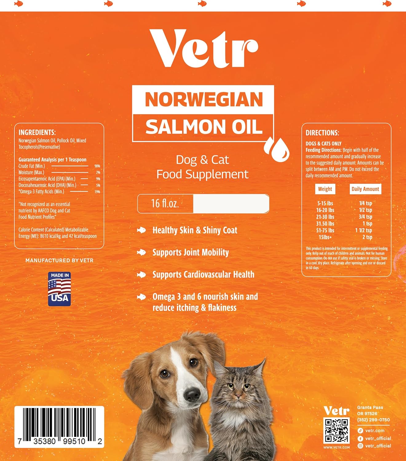 Transform your pet’s health with our Norwegian Salmon Oil for Dogs & Cats (16.9 oz). Sourced from wild-caught salmon in Norway’s pristine waters, this 100% pure Omega-3 fish oil is packed with EPA, DHA, Omega-6, and Omega-9 to support vibrant skin, a shiny coat, and overall wellness. Say goodbye to dry, itchy skin and excessive shedding! Our premium oil reduces flakiness, soothes allergies, and promotes a lustrous coat your pet will love. Perfect for puppies, seniors, or any pet in between, it also supports joint mobility, heart health, and a strong immune system for a happier, healthier companion. Unlike inferior oils, our salmon oil is virtually odorless, free of additives, and sustainably sourced. The convenient pump bottle makes dosing a breeze—just add 1 pump (0.5 tsp) per 10 lbs of body weight to your pet’s food. Pets devour the mild, natural flavor, making mealtime a joy! Manufactured in an FDA-registered, GMP-approved facility and rigorously tested for purity, it’s a trusted choice for thousands of pet parents. Start with half the dose for the first week, then watch the transformation in as little as 2 weeks. Store in a cool, dry place and consult your vet for pets with fish allergies.