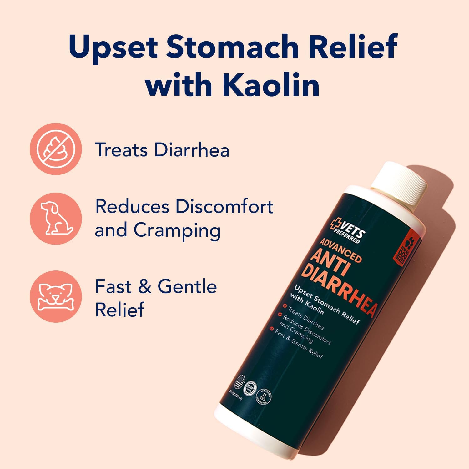 About this item DOG DIARRHEA MEDICATION: Soothe your pet’s upset stomach and stop their diarrhea with the advanced diarrhea medicine for dogs. RESTORES GUT HEALTH: Change in diet, parasites, antibiotics, and general dog anxiety can lead to diarrhea in dogs. The diarrhea medication is suitable for use in cases of diarrhea, gastroenteritis, gas relief. ANTI-DIARRHEA FOR DOGS: The dog diarrhea medicine provides relief for dogs thanks to its potent pectin fiber and kaolin clay formula suitable for all dogs. The active ingredients help relieve diarrhea without leaving your dog dehydrated. SOOTHES & FIRMS: Our dog diarrhea treatment has fast absorbent action, which helps alleviate the irritation, discomfort, and cramping associated with dog diarrhea within 2-3 days. Administer once every 12 hours directly or mix with their food. VETERINARIAN-GRADE: Our advanced anti-diarrhea for dogs medicine is made in the USA under strict supervision to ensure optimum quality. If, for some reason, the dog diarrhea medicine doesn't work for your dog, please contact us. › See more product details