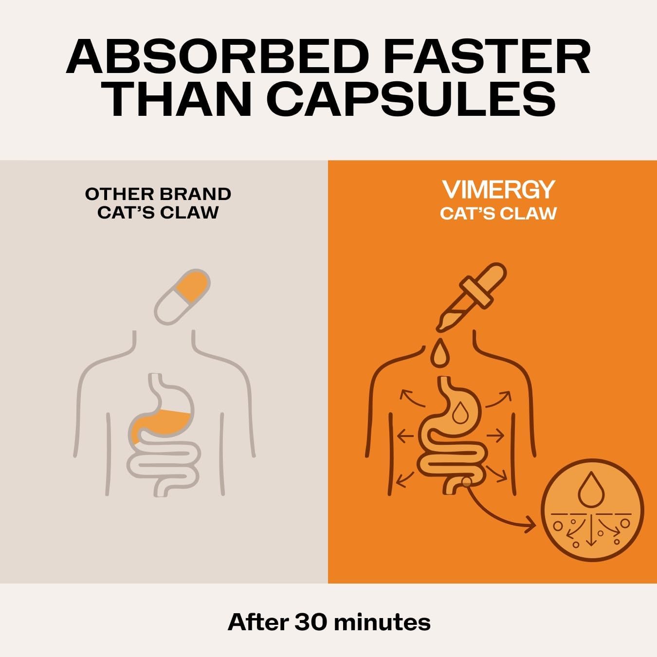 VIMERGY Organic Liquid Cat’s Claw is now made with a new, fresher extract processed exclusively to deliver the same potency in a fast-absorbing formula. New, proprietary USA extraction process uses only purified water and no other solvents.