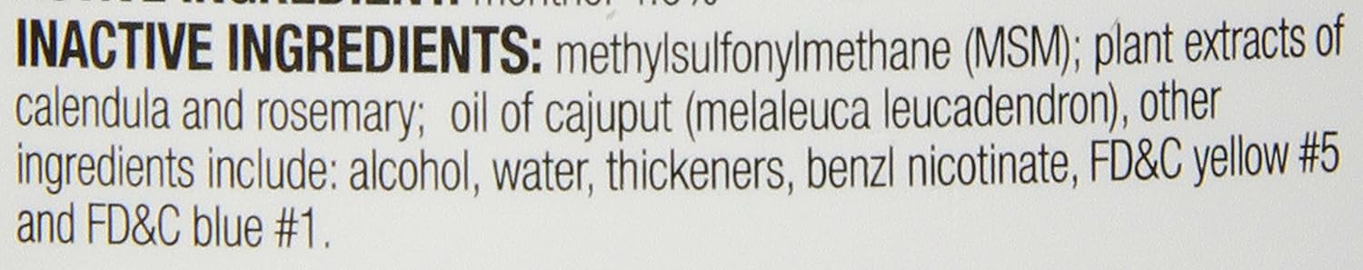 About this item The information below is per-pack only Gel liniment provides immediate flash cooling followed by deep warming and increased circulation Stimulates circulation for long-lasting heat sensation Helps reduce pain and swelling Contains MSM and is 100% acetone-free For use on horses › See more product details