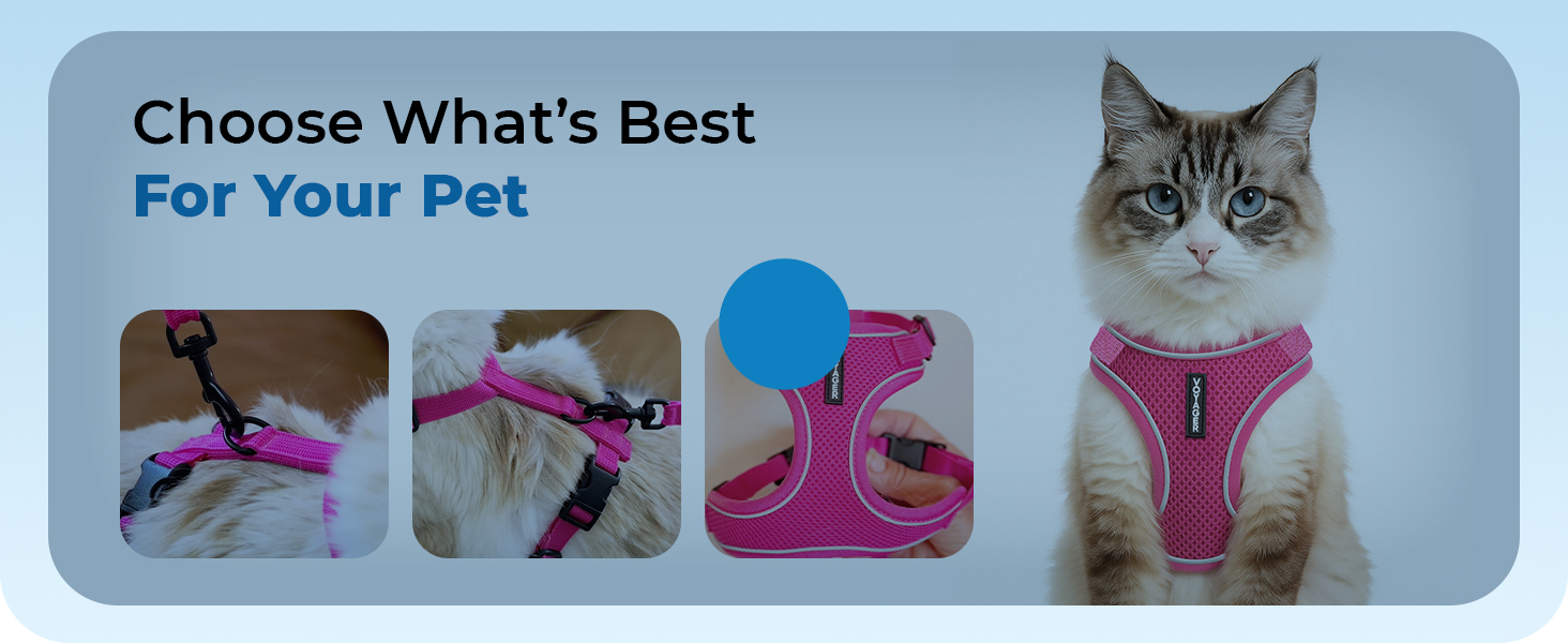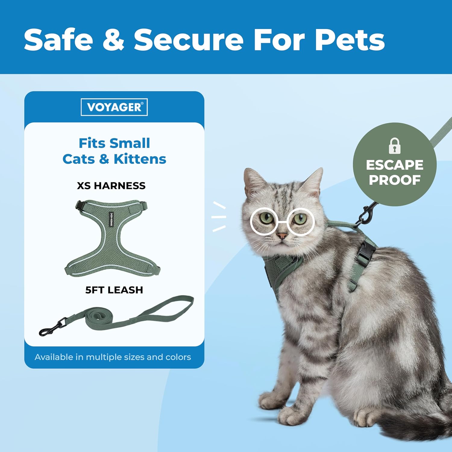 About this item Fits All Cat Breeds: Whether your pet is a small, medium or large breed, we have the right size to match. PLEASE NOTE: Sizing does NOT correspond to your pet’s breed, size, or weight. MEASURE your pet and refer to our sizing chart to find the best fit before ordering All Weather Air Mesh: Made with three layers of soft, durable and breathable air mesh materials, this fully adjustable and lightweight cat harness is perfect for wearing indoor or while sleeping Premium All-Purpose Lead – Voyager 5' leashes are designed to support pet owners and cats who likes to explore as they’re ideal for walking, trips to vet visits and shopping. We use a high-quality, heavy-duty nylon to ensure it stands up to long walks, heavy pulling, and rainy weather Enhanced Visibility: An upgrade from our previous model - our new cat harness features reflective stitching throughout front panel. It increases your pet's visibility during morning and evening strolls, keeping them safe in low light conditions Fully Adjustable: To prevent your cats and kitty from escaping or backing out of the harness, Voyager Cat Harness is equipped with fully adjustable straps around the neck and chest to ensure perfect and escape proof fit › See more product details