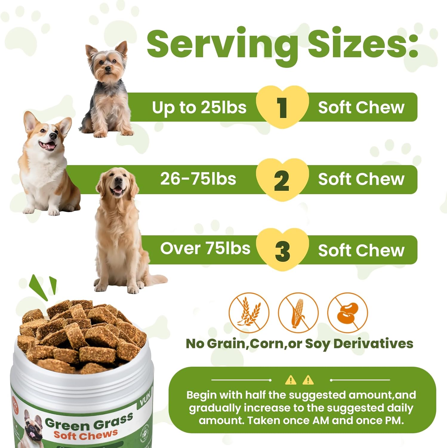 - Included Components: green grass dog chews