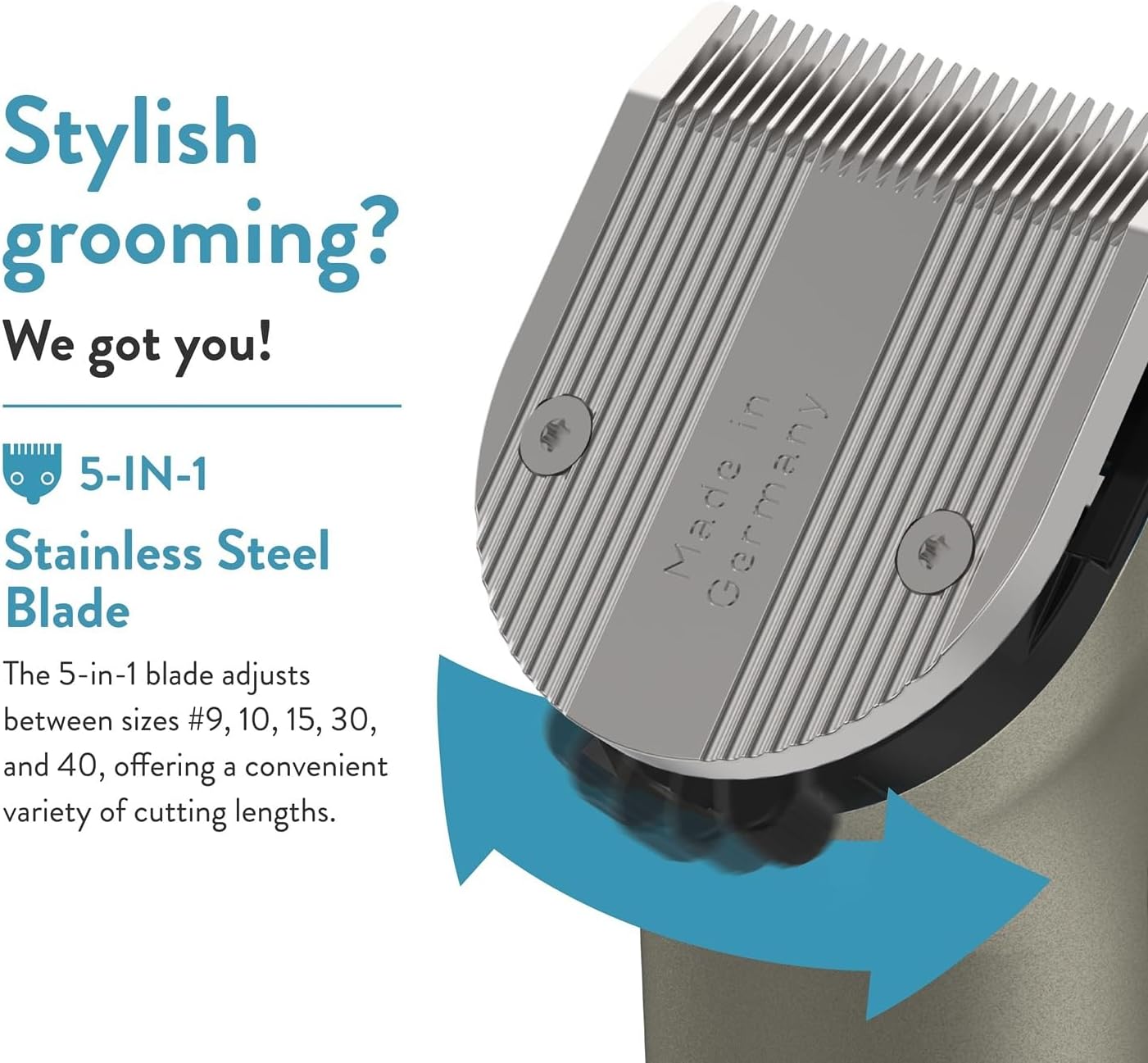 About this item Professional-Grade Pet Clippers for Grooming: Get salon-quality results with this powerful pet grooming tool; perfect for any dog, cat, or horse The 5-in-1 fine blade adjusts between sizes #9, 10, 15, 30, and 40, offering a convenient variety of cutting lengths; With a rechargeable battery, this clipper has an 80-minute cordless run time and 75 minute charge time The Arco can be used on small and medium-sized dogs such as Bichons, Shih Tzus, Terriers, and Spaniels, as well as cats; can also be used on horses for trimming and touch-ups on the muzzle, face, ears, legs, fetlocks, and bridle paths Includes one Arco cordless clipper, 5-in-1 fine blade set, two drop-in NiMH rechargeable battery packs, a soft storage case, charging stand and charger, 4 plastic attachment guide combs, cleaning brush, blade oil, and instruction book Wahl performs quality assurance on all of our products and small bits of synthetic hair may appear on the blade or clipper as a result of this process; Rest assured that your clipper and blade are brand new › See more product details