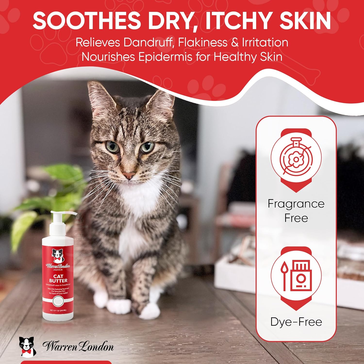 About this item Intense 24-Hour Hydration – A luxurious, leave-in conditioner lotion that deeply penetrates your cat’s skin and coat for lasting softness and hydration. Non-Oily & Lightweight – This premium formula hydrates, conditions, and detangles without leaving a greasy residue. Perfect for routine maintenance and in-between bath touch-ups. Soothes Dry, Itchy Skin – Moisturizes and nourishes to help relieve cat dandruff, flaky skin, and general irritation. Safe for All Coat Types – Conditions and softens both long and short-haired cat coats, leaving them sleek and smooth. Unscented & Gentle – Fragrance-free and dye-free, ideal for cats with sensitive skin or prone to allergies. Easy Leave-In Application – Simply massage into your cat’s coat and skin—no rinse needed! Proudly made in the USA. › See more product details