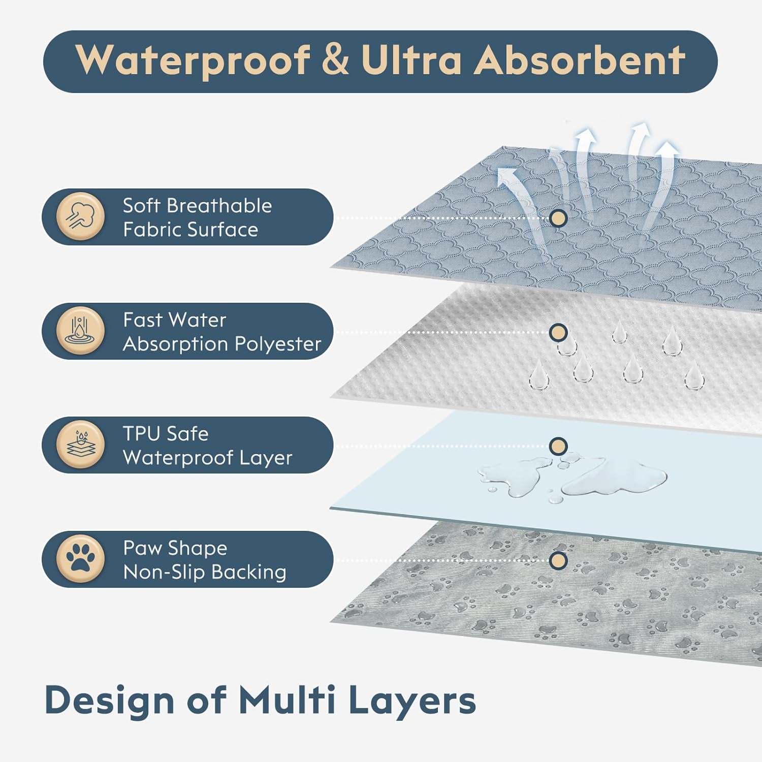 About this item Multi-layer Design ✔️ 【Multiple Size Options】: We offer various sizes to suit different animals and applications. The 12" x 12" and 18" x 24" sizes are suitable for small animals like puppies,guinea pigs,rabbits and hamsters. The 24" x 47" size fits perfectly with Midwest and C&C Grids cages. The 24" x 24" ,36" x 36",36" x 48" sizes are more suitable for small and large dogs, while the 36" x 41" size is ideal for pet dog crates. ✔️ 【Washable & Reusable】 Our pee pads are reusable, machine washable, and tumble dryable. They stay like-new and soft. With multi pads per package, replacing them after cleaning is easy, ensuring convenience and cleanliness for your furry friend. ✔️ 【Efficient Absorption & Odor Control】 Enjoy superior absorption and odor control with our advanced cage liners. Featuring a thick, high-density water-absorbing layer, these pee pads keep your pet dry and odor-free throughout the night. ✔️ 【Leakproof & Anti-Slip】 Our pee pads ensure both your pet's safety and your peace of mind. With a strong waterproof TPU inner layer, leaks are prevented, protecting your floor. The upgraded non-slip backing keeps the liners secure, providing stability for your pet and minimizing accidents. ✔️ 【Premium Customer Service】 Soft reusable pee pads make a wonderful gift for your pet, ensuring guinea pigs thrive in optimal conditions. Each package includes multis. For any inquiries, feel free to contact us, we'll respond within 24 hours. › See more product details