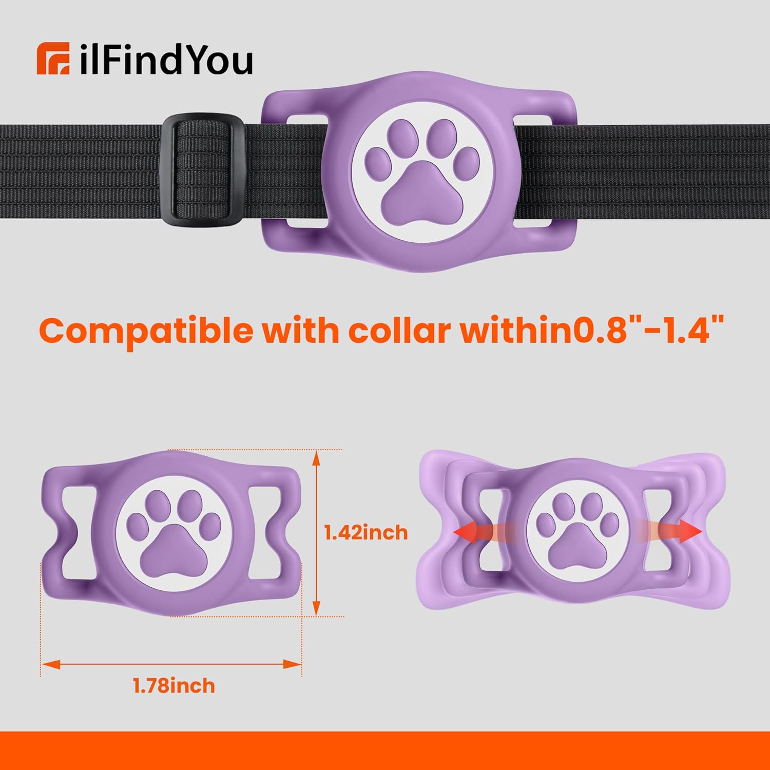 About this item Specially Designed for Pets Collar: ilFindYou waterproof airtag holder for dog collar special design for Apple Airtags 2021. Durable AirTag collar holders feature a snug, form-fitting design that securely attaches to most pet collars(Airtag not include) IP68 Waterproof: The AirTag protective case consists of an inner sleeve and an outer shell, with a tight, fully enclosed structure and a 100% waterproof design, so you no longer have to worry about your pet playing in water Strong protection: 360° fully enclosed design provides strong protection for your AirTag, making it waterproof, dustproof, shock-resistant, and scratch-resistant. Enables you to continuously and stably track your furry friend Material: Our airtag dog collar holder made from high-strength, ultra-durable silicone, it is elastic, lightweight, and will not interfere with the AirTag's signal or affect your pet's daily adventures Easy to install: First, place the AirTag into the inner sleeve, then put the inner sleeve into the outer shell, and finally slide the protective case onto the collar. The silicone material is highly elastic, making it very convenient to install › See more product details