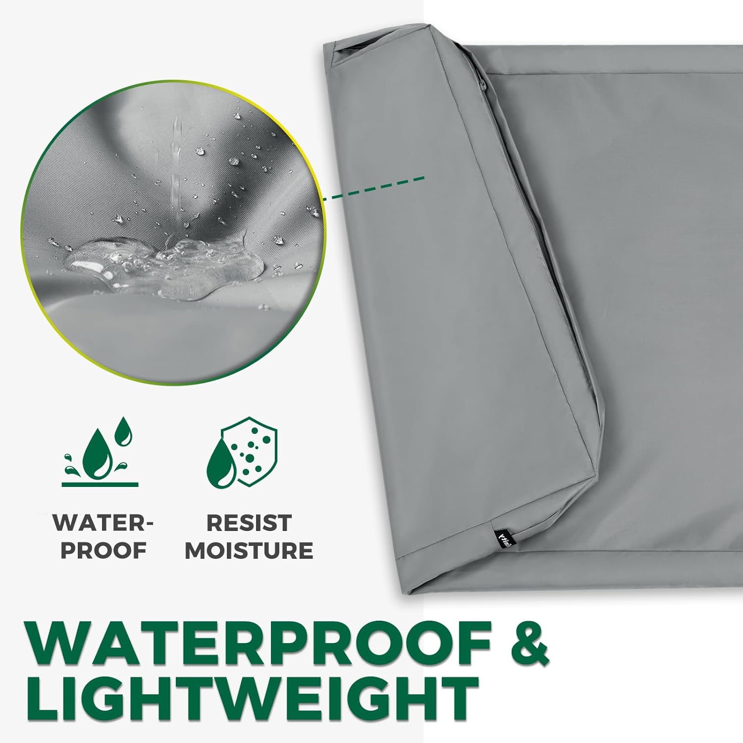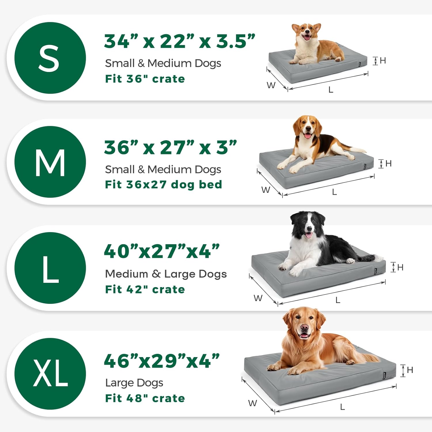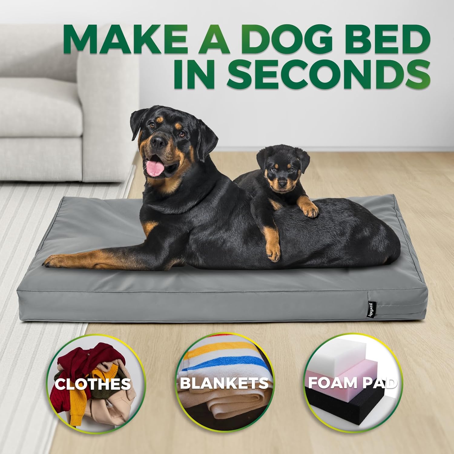 About this item 【Full Coverage Waterproof】Our waterproof dog bed cover features a pet-friendly waterproof coating that prevents dog pee and other liquids from soaking through to the bed, keeping pet bed dry and clean without the need for daily washing. Suitable for dogs of all ages, including potty-training puppies and senior dogs prone to accidents 【Durable and Tear-Resistant】Our premium Oxford fabric(more durable than polyester and canvas), provides strong protection against scratching and chewing, extending the lifespan of your dog bed. This tough cover features a soft, smooth surface that won’t trap or stick pet hair, making it easy to wipe clean 【Long Zipper Design for Easy Replacement】Large opening makes it quick and easy to remove for washing and replacing—no hassle for daily use. The zipper has a top flap to prevent liquid seepage, and the auto-lock slider stops pets from opening the bed when they try to be clever 【Versatile Replacement Dog Bed Cover】This cover comes in multiple sizes to fit small, medium, and large dog beds. It accommodates flat dog beds, crate beds, dog mattresses, and bolster/pillow/orthopedic dog beds, and works perfectly in 36–48 inch dog crates, kennels, or playpens. *Cover only. Dog bed not included 【Quick & Easy Diy Dog Bed】Simply stuff your old clothes, blankets, pillows, foam pads, or egg crates into our cover to create a cozy, temporary dog bed for your fur baby or dog guest during camping, travel, or outings. Make a dog bed in seconds › See more product details
