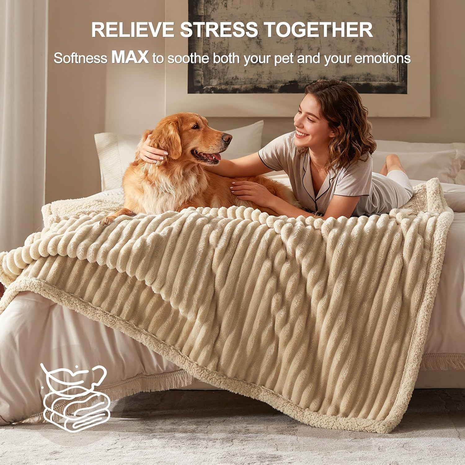 About this item 🐕【Soft and Skin-Friendly Texture】: This dog blanket will become an essential item for your furry family member at home, bringing you and your pet closer together. Designed with “comfort and warmth” in mind, it offers an exceptional sleeping experience, enveloping your pet in cozy warmth. Crafted from high-density woven flannel and cotton fleece, it delivers a delicately soft feel with lasting comfort and durability. 🐕【Waterproof and Splash-Resistant Design】: This pet blanket features an integrated waterproof TPU layer, tested through thousands of liquid penetration experiments to effectively prevent moisture from seeping through to the underlying fabric, ensuring a dry and comfortable experience.Note: Flannel and Cotton fleece fabrics are not waterproof. 🐕【Double-Sided Comfort】: Our pet blanket features a triple-layer construction for reversible use. Crafted from 260gsm flannel and 220gsm cotton fleece fabrics, each side offers a distinct texture and feel for uniquely soft touches. Every surface provides you and your pet with a sense of calm, warmth, and cozy companionship. 🐕【Bed & Sofa Protector】: This waterproof blanket effectively shields against liquid spills, pet hair, stains, and other common messes, keeping your sofa, bed, and pet cages fresh and clean for longer. It's an essential item for both home life and travel with your furry friends. 🐕【Easy to clean】: Machine-washable design. Simply air dry or tumble dry at low temperature to restore it to like-new condition. This reduces your cleaning hassle, giving you more time to enjoy heartwarming moments with your furry companion. 🐕【Portable】: Its lightweight design makes it easy to carry, perfect for travel, camping, picnics, and adventures. Stay close to your furry companion and enjoy joyful outdoor moments together. › See more product details
