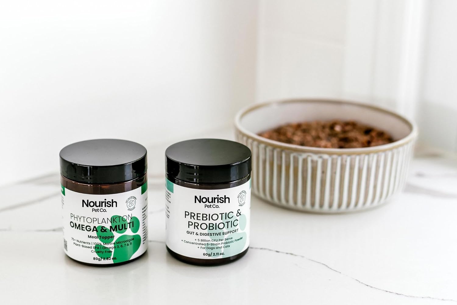Support your pet's skin and gut with this Wellness Duo Pack – combining Prebiotic + Probiotic and Phytoplankton to help maintain healthy skin, promote comfort, and support immune health. Ideal for pets with sensitivities, it nurtures wellness from the inside out.