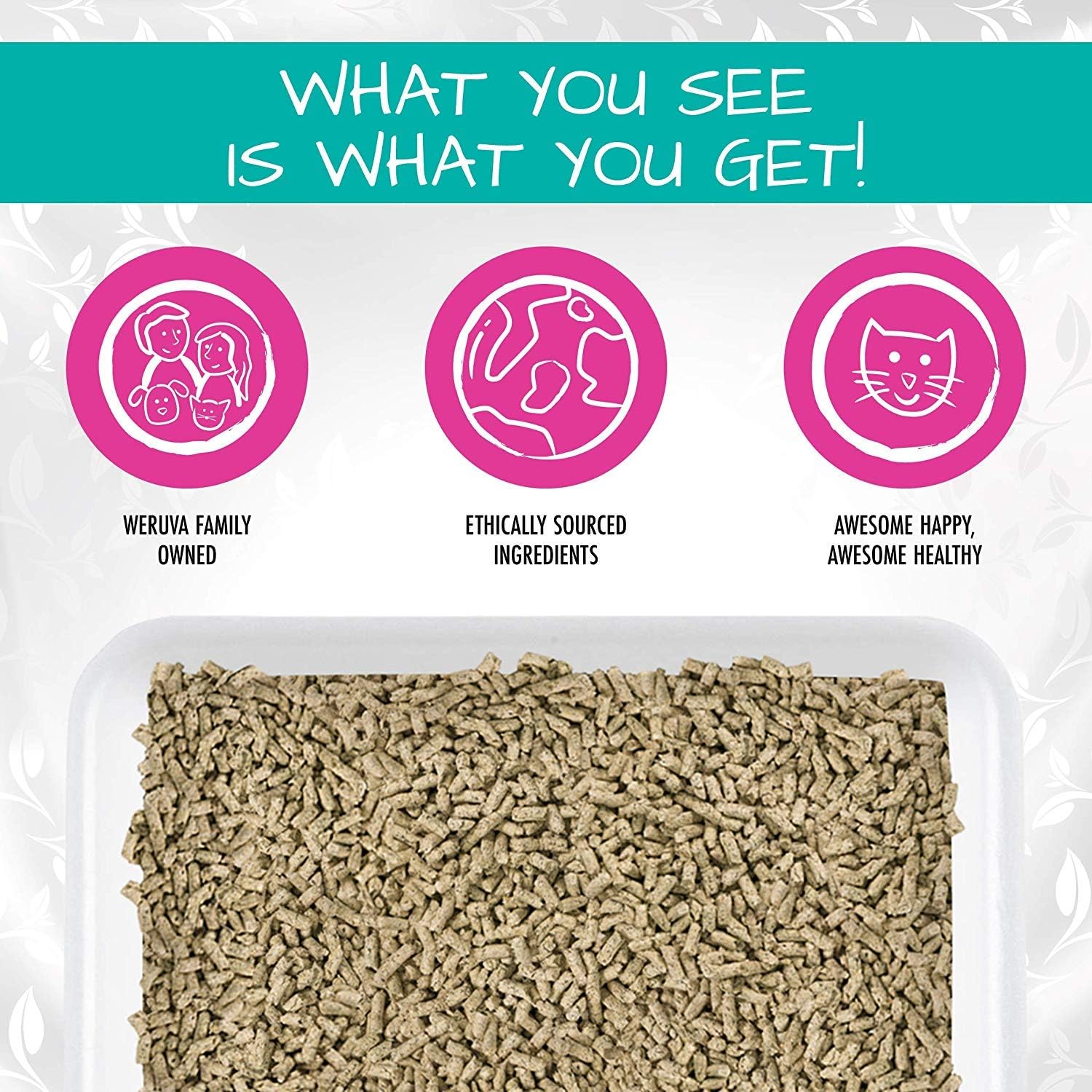 About this item All-natural cat litter made with hinoki wood & green tea, includes a pink pelleted litter scoop Superior natural odor control with a fresh green tea aroma Quick clumping, flushable & super-low dust Clay-free & grain-free (no wheat, no corn, no soy) hypoallergenic cat litter Family owned for over 10 years & proudly source responsible & sustainable raw materials › See more product details