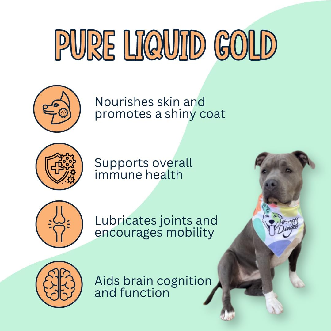 Elevate your pet's wellness with Happy Dingos Wild Alaskan Salmon Oil, a premium supplement sourced from the pristine waters of Alaska. This pure, natural oil delivers essential omega-3 fatty acids, EPA, and DHA to support your furry friend's overall health. Each bottle contains 100% wild-caught Alaskan salmon oil, carefully processed to maintain its nutritional integrity. Watch as your pet's coat transforms to become shinier and healthier, while the powerful nutrients support their immune system, cognitive function, and joint mobility. Made in the USA under strict quality standards, this non-GMO formula is ideal for pets with allergies or skin sensitivities. Transform your pet's mealtime into a nutritious boost that they'll love, with this pure, natural supplement that helps them thrive from the inside out.