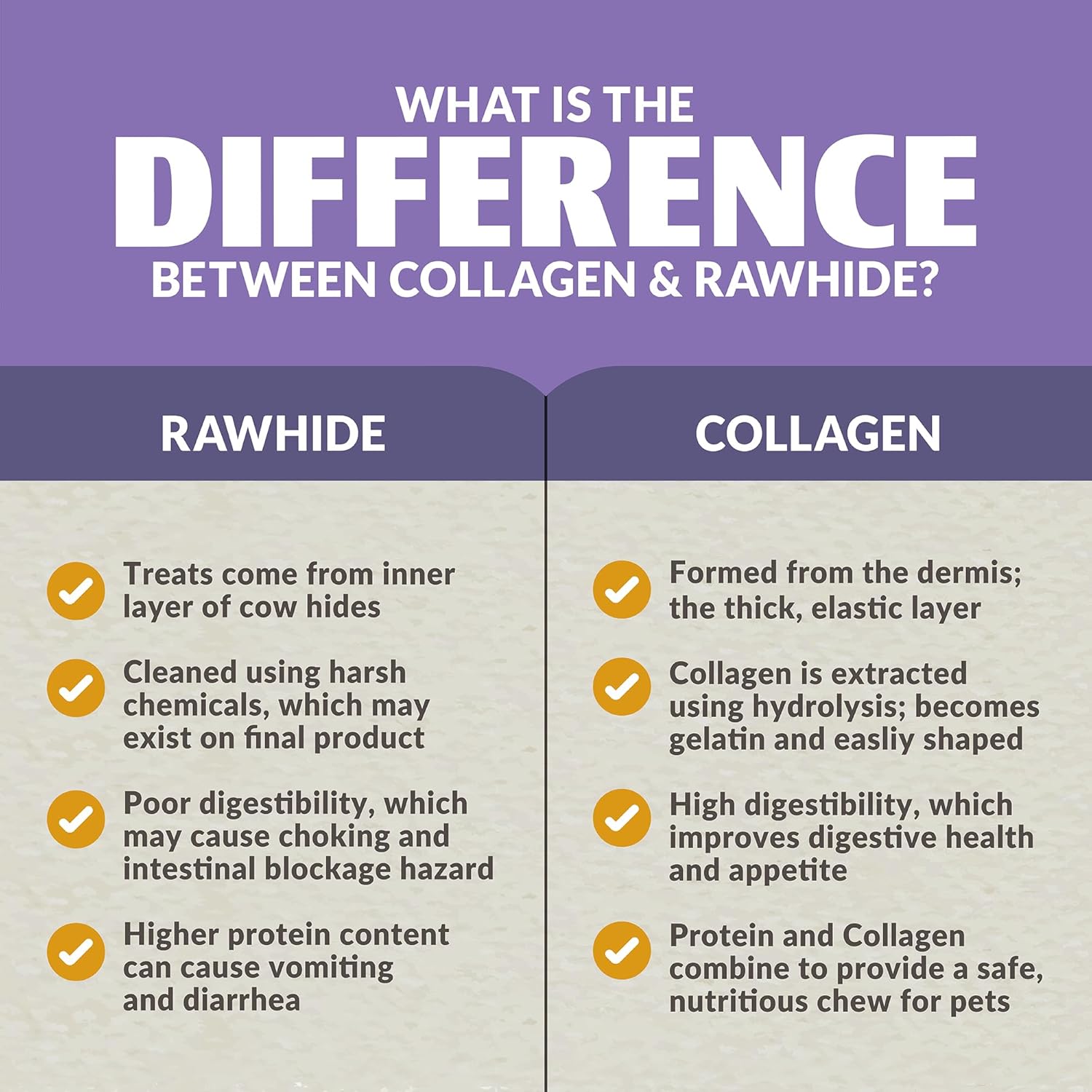 About this item HIGHLY DIGESTABLE, HYDROLYZED - We Use Water to Break Down the Dermis Layer which Increases the Digestibly to 99%, Resulting in Less G.I. Distress HIGH PROTEIN & LOW CALORIE - A Guit Free Long Lasting Dog Chew! 5-1 PROTECTION - Beef Gelatin Base Supports, Dental, Glossy Coat, Soft Skin, Strong Joints, Muscles, and Nails LIKE A BULLY STICK WITHOUT THE JUNK: No Artificial Colors or Preservatives & Rawhide-Free TRANSPARENT LABEL: We Actually Show Our Back Panel with Ingredient Lists and Guaranteed Analysis, No Hiding › See more product details