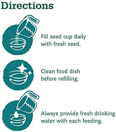 - Directions: Fill seed cup daily with fresh seed.Clean food dish before refilling.Always provide fresh drinking water with each feeding.