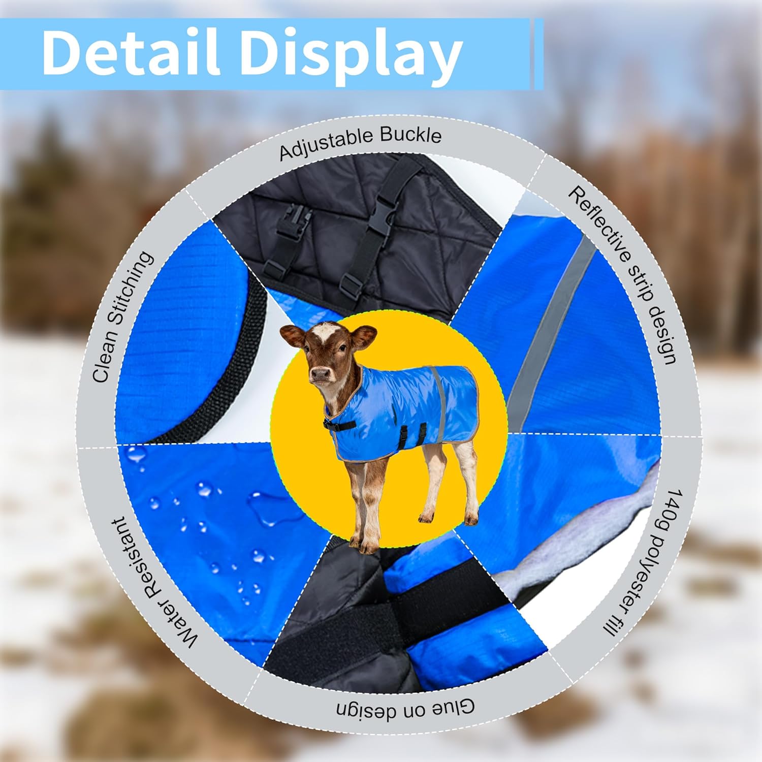 (Engineered Warmth: The 140g Filling Advantage) Introducing the calf coat where measurable warmth meets premium design. Unlike generic options, our Calf Blanket is precisely filled with 140g of premium insulation and lined with soft fleece, creating an unbeatable barrier against the cold. The 100% Polyester shell is treated to be water-resistant, protecting against wet weather while being breathable. This technical construction makes it the ideal calf jacket for extreme cold weather in regions like Michigan, Wisconsin, and Nebraska. (Durability Meets Design) Every component is chosen for performance. The 100% Polyester fabric is chosen for its strength and rip-resistant qualities. The gold trim is not just aesthetic but a signature of a high-quality calf saver coat. We've ensured that the heavy-duty buckles and wide straps are easy to adjust for a perfect fit on a growing Holstein calf or a sturdy Nubian goat. (Your All-in-One Winter Solution) Ideal for: Newborn and weak calves that require critical, measurable warmth (140g filling). Goats and sheep during and after winter shearing. Large breed dogs who need a tough, warm, and water-resistant outdoor coat. Miniature donkeys and foals as a reliable winter blanket. Choose a coat that specs matter. With 140g filling and a water-resistant 100% Polyester shell, this is the informed choice for the serious farmer. Add to cart now!