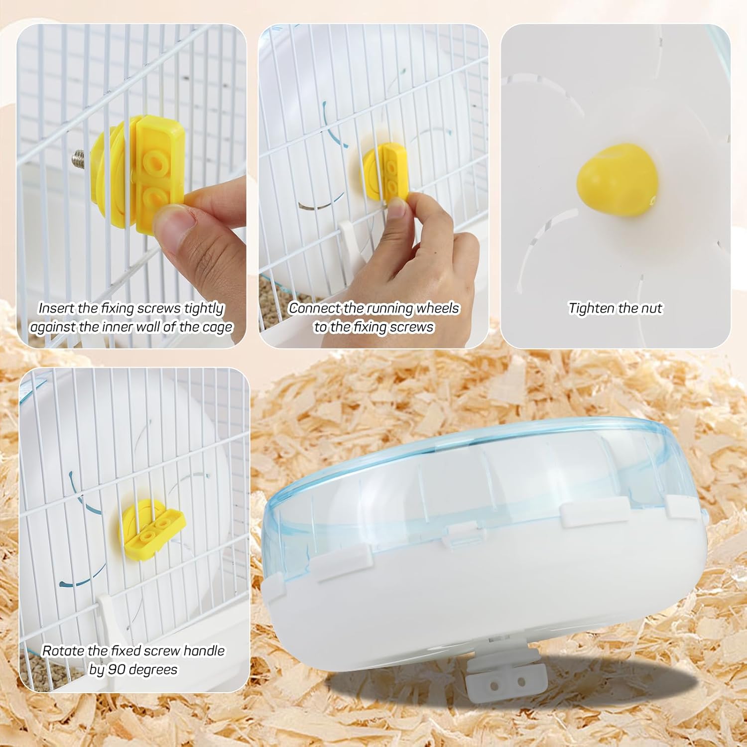 Description: Hamsters are small animals that love sports. As long as they want to exercise during the day or night, our toy is a silent wheel and suitable for sports lovers. Specification: Weight:63g Size:12cm, 18cm, 21cm Color:blue/pink/clear Package: 1*running wheel Installation: 1. Align the yellow box with the square hole in the middle of the running wheel, and then snap it in. 2. Put the nut on the pump and tighten it. 3. Just hang the running wheel on the wire cage. Note: 1. The dimensions are all manually measured, please allow a little error. 2. You can contact us if you encounter any problems during use, thank you.