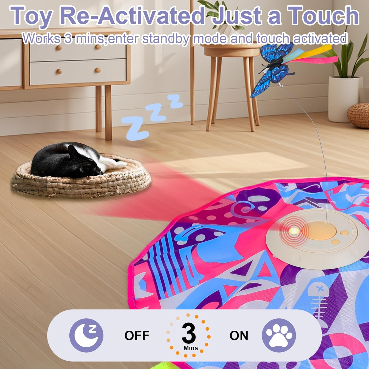 If you are also troubled by such things, then this WN'S DAY Interactive Cat Toy will solve all your troubles. best cat toys No more bored kitties! Feathers + butterfly attachments trigger hunting instincts with randomized movements.cat toys with High-quality, tear-resistant ABS thickened fabric, feathers,butterfly and withstand aggressive play while ensuring pet safety. Carefully Designed In any operating mode, the cat toy will enter sleep mode after runn-ing for 3 minutes, After sieeping, if the cat toys is touched or shaken ora heat source (a warm-blooded animal ) approaches, it will automa-tically start running.(Note: The vibration switch starts working 2 seconds after sleeping.and heat source switch starts working 5 seconds after sleeping.) In the powered-on state, each short press will switch to a different modeThis automatic cat toys has three cat-teasing modes. ① Standard wand cat toys. ② Butterfly or Feathers dance. ③ Dual-action frenzy. USB rechargeable (cable included),USB rechargeable is more convenient,reduce waste. USB cable is included in the package.Tip: Please do not use the fast charging adapte. 20.9inch Large size, our electronic cat toys are larger, cheaper,and more cost-effective than other products.Gift box with spare feathers . that offers a long-lasting charge of fun for your furry friend. your kitten can enjoy uninterrupted self playtime for up to several days.promotes exercise and relieves boredom and loneliness. Our world is vast—she's just a part of it. Her world is tiny—we're her everything. WN'S DAY fills her lonely hours with joy.