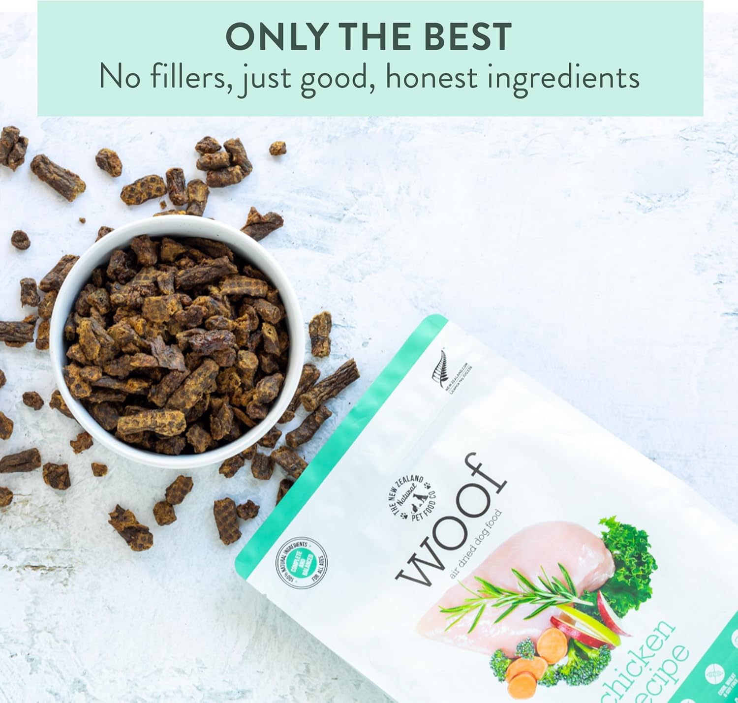 Elevate your pet's dining experience with our Woof Air Dried Dog Food, featuring Chicken, Beef, and Wild Venison. A Culinary Masterpiece Introducing our exceptional range of adult dog food options, including Chicken, Beef, and Wild Venison, such as WOOF Chicken Air Dried Food. Every meal should be a delightful experience, and that's precisely what we aim to offer with our exceptional dogs food, crafted using a unique air-drying process that preserves both flavor and nutrition. A Commitment to Purity When you choose our range, you're opting for products that are pure and simple. We take pride in our transparency regarding ingredients, ensuring that each meal is free from artificial preservatives, flavors, or colors. Your pet can savor the authentic flavors of natural chewy dog food with every bite. Allergen-Friendly Our dog foods range, including Chicken, Beef, and Wild Venison, is a blessing for pets with dietary sensitivities. It's grain and gluten-free, ensuring even the most sensitive stomachs can indulge without worry. A Nutrient-Rich Experience Beyond delectable taste, our food range, such as Chicken, Beef, and Wild Venison, is a nutrient-rich superfood, meticulously designed to enhance your pet's overall well-being. Every ingredient is chosen for its maximum nutritional value, turning mealtime into an enjoyable source of vitality and health. Versatility in Feeding Options We believe dining should be an adventure, which is why our food range offers versatility in feeding options. Use it as a meal mixer to enrich your pet's regular diet, infusing it with the rich flavors they love. Alternatively, sprinkle it as a delectable topper to add excitement to their meals. Treat your cherished companion to a culinary masterpiece that nourishes their body and delights their palate with Woof Air Dried Food.