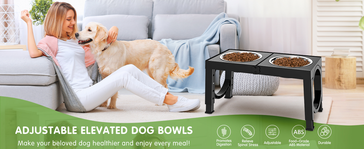 About this item ATTENTION: Please check the size chart before oder, make sure the stand height will fit your dog well. We suggest to measure dog height from foot to the middle line of the body, and data needs to meet a certain height of the stand approximately, puppy's whole body height under 15inch won't fit after setting the stand up. FOR SENIOR DOGS: Effectively protects the spine and neck, avoiding appetite problems caused by prolonged uncomfortable posture. An adjustable dog bowl stand for dogs that tend to vomit when eating, have limited mobility, and suffer from arthritis. FOUR ADJUSTABLE HEIGHT RAISED DOG BOWLS: Our raised dog bowls for large sized dog can be adjusted to four different heights 3.15'' 9.09'' 10.63'' 12.20'' 13.78'', suit for all breeds and ages. Designed for large dogs, the maximum adjustable height is approximately 1.58 inch higher to fit large dogs needs. DUAL STAINLESS STEEL DOG BOWLS: Comes with two dog bowls for water or food, 7.87x 2.56 inch, meet the feeding needs of most dogs for a day. Easy to detach and clean, dish-washable. The oil in dog food can be cleaned more easily to avoid problems such as black chin. ANTI-SLIP QUIET DURABLE: The non-slip pads and the silent strip on the elevated dog bowl stand, prevents it from being accidentally knocked over by your dog, but also ensures that the bowl and stand stay stable even during vigorous eating. Avoid daily hassle of cleaning up the floor after your dog's meal! PORTABLE FOR TRAVELING: XiaZ elevated dog bowls large breed is convenient for outside traveling, you could fold the dog bowl up into a smallest shape, and put in a bag, basket, or in your car, so you could go outside freely with your dog or cat, enjoy every moment with your pet. EASY TO INSTALLATION: Designed with collapsible legs, makes it easy to set up and use, and stores well when you don't need it. Perfect for packing them away when you're traveling. JOINT PROTECTION: XiaZ elevated dog bowl stand helps your dog develop a healthier eating position, allowing them to access food and water easily and comfortably without having to hunching over, reducing stress on joints. › See more product details