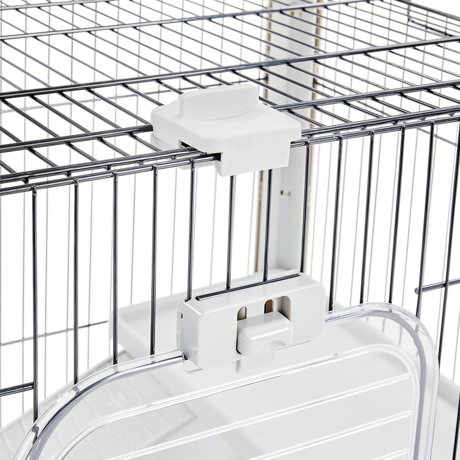 About this item Open Top Design: This open-top bunny cage provides a convenient inner-cage cleaning and decorating solution. The top can be widely opened to give you full access to the inside. And when you're all done, it's a breeze to lock it up securely again 2-level Layout With Ramp: This 2-tier rabbit cage features a customizable ramp and platform placement, allowing you to choose the position of the balcony and build an ideal living space for your cuddly companions Safe and Durable For Small Animals: Crafted of powder-coated metal wires and polypropylene, this rolling rabbit cage boasts high strength and durability. The top and front doors are secured with locks to make sure your little friends stay in the cage safely when you are not around. With a bar spacing of 3/4″, this bunny cage is also perfect for little critters like guinea pigs, ferrets, and chinchillas Move It Freely: Thanks to the 4 wheels, this guinea pig cage is effortless to move around your home at will. And to provide further stability, 2 of the wheels can lock to make sure the cage stays put when you want it to Pull-out Tray For Easy Cleaning: The bunny cage comes with a base that includes 2 grid panels to effectively sieve hay, fur, and food particles and maintain the cleanliness of the cage. As for cleaning, the 2 pull-out trays at the bottom collect all the litter and can be easily removed › See more product details