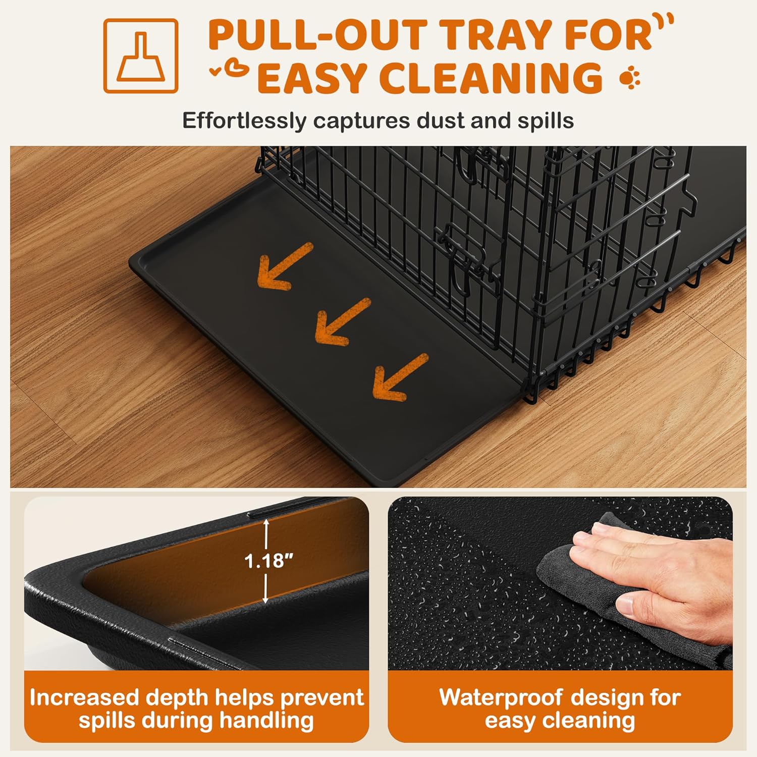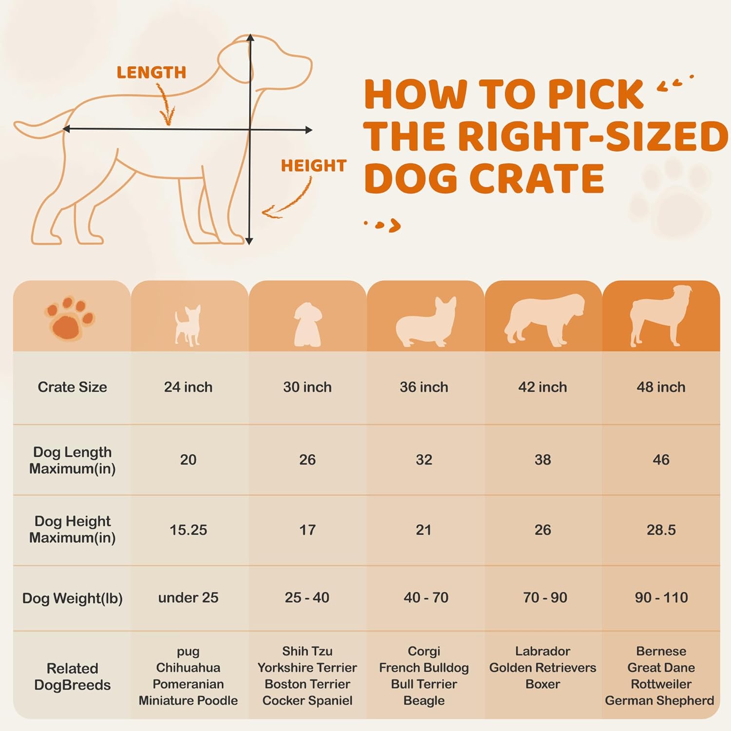 About this item Versatile Dog Crate for All Stages: From playful puppies to adult dogs, this dog crate with divider adapts to every stage. Whether teaching your puppy good potty habits or helping them create a cozy, designated sleeping area, this adjustable divider helps tailor the space to ensure comfort and convenience Portable & Collapsible Dog Crate: With its convenient buckle setup and a detachable handle, this 107 cm dog crate can be easily folded down to a compact size of 108.5 cm L × 61 cm W × 10 cm H. This dog cage is ideal for easy carrying during trips or camping and can be conveniently stored under your bed, sofa, or in tight spaces when not in use Spacious Haven for Medium-Sized to Large Dogs: Tailored flawlessly for medium-sized to large dogs, this 42-inch pet cage is an ideal retreat for breeds like Labradors, Golden Retrievers, and Border Collies. Your furry friend will have plenty of room to lounge, stretch out, or chill comfortably in this cozy space Pull-Out Leak-Proof Tray: This pet crate includes a pull-out leak-proof tray at the bottom to catch spills and accidents. The tray can be easily removed for cleaning, making maintaining a snap. The locking buckles keep the tray securely in place Grow-with-Me Interior: This dog crate features a clever divider that adjusts the living space as your puppy grows. It’s not just a cozy home but a great assistant for enhancing potty training during those early days › See more product details