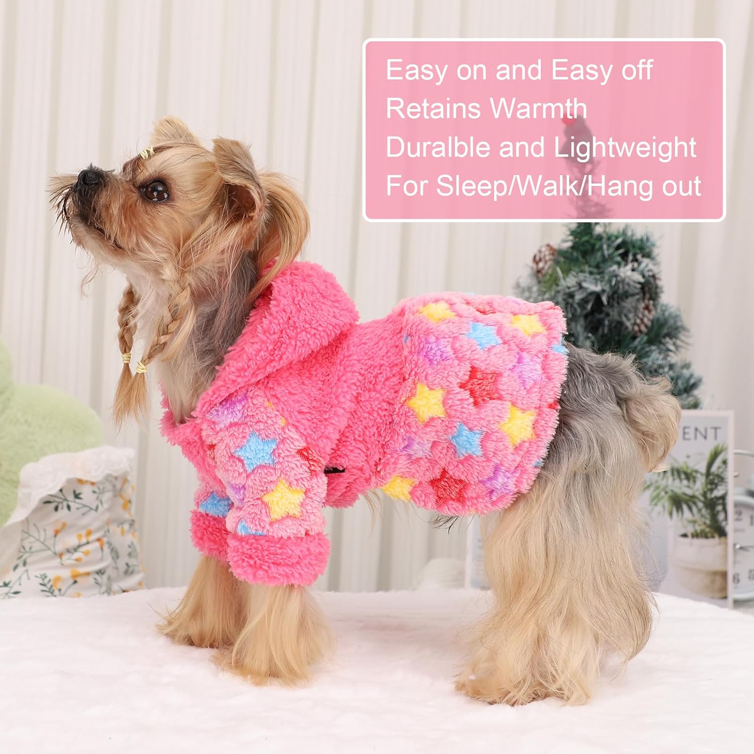 Yikeyo Dog Sweater Dress for Small Dogs Girl Boy, Cute Warm Fleece Dog Hooded Sweater, Soft Puppy Clothes Pet Clothes Birthday Dresses Holiday Outfits with star patternSizing Note: Please don't choose the size based on your usual size, measure your pet's chest girth in priority, and back length, get the right size based on size chart. If your pet is still growing, or your pet has a stout body, please do size up.Specifications:▪ Design: 2-leg,O-neck▪ Gender: pet (boy girl)▪Recommended Ranges: 1.1lbs to 15lbs.▪🐈 &🐕 Suitable for small to medium size dogs or cats kitty .▪Package Content: 1 PC dog sweater dress Recommend Breeds Of Dog: ▪ 🐶 Chihuahua, Teacup Dog,YorkieFeature:✔Autumn, Winter✔ Stretch fabric for easy on and off✔Open crotch design for easy bathroom access✔ Usage Scenarios: daily wearing, walking, home, outdoor activities, sports, travel, make your puppy amiable, allow the pet to enjoy playing
