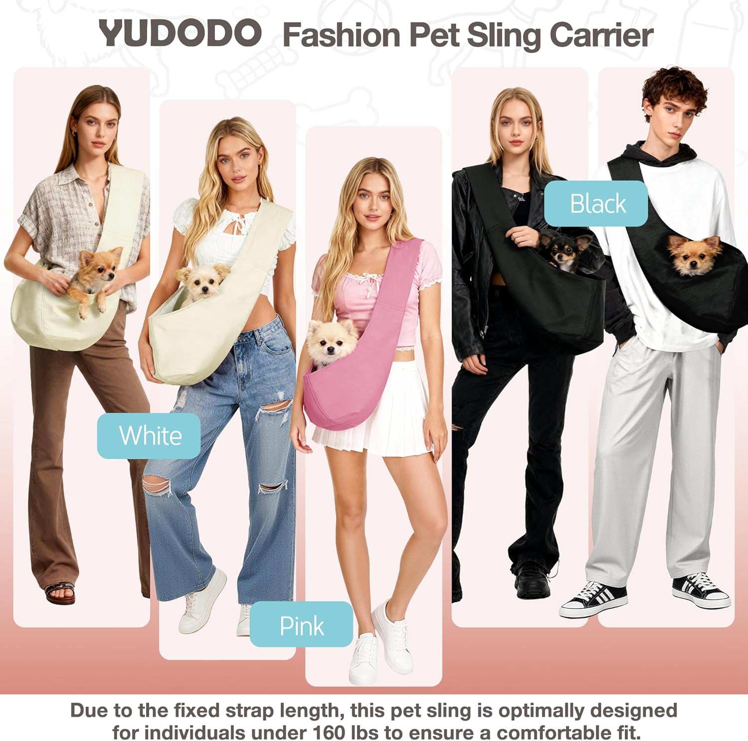 About this item YUDODO Fashion Dog Sling for Small Pets: Designed for small dogs and cats up to 9 lbs, this YUDODO fashion dog sling carrier offers a secure, hands-free way to keep your pet close during walks, errands, and daily travel. A lightweight small dog sling suitable for all seasons. Lightweight, Stylish & Easy to Match Outfits: Made from soft and breathable materials, this crossbody dog carrier is comfortable to wear while delivering a clean, modern, fashion-forward look. Easily pairs with casual or sporty outfits—perfect for pet parents who value style. Secure with Built-In Safety Strap: Includes an integrated safety buckle to prevent your small dog or cat from jumping out. Whether you’re walking, shopping, or commuting, this hands-free dog carrier keeps your pet safely supported. Convenient Pocket for Essentials: The side pocket provides room for your phone, treats, keys, or waste bags, keeping everything easily accessible. Perfect for quick trips, short walks, or outdoor activities—no extra bag needed. Machine Washable & Recommended to Buy Two: Durable, easy to maintain, and fully machine washable. Buying two colors to rotate between outfits, ensuring cleanliness while enhancing everyday style. › See more product details