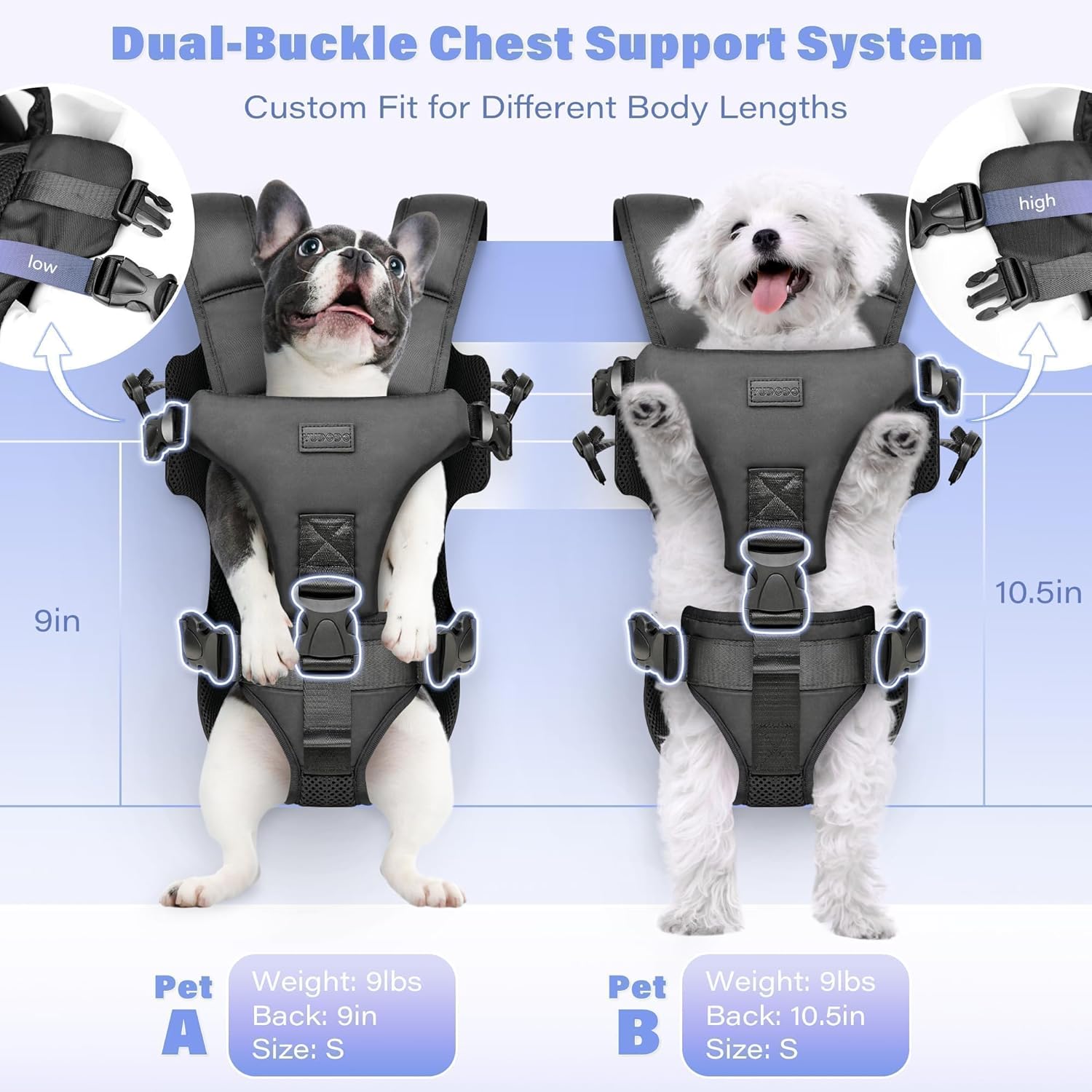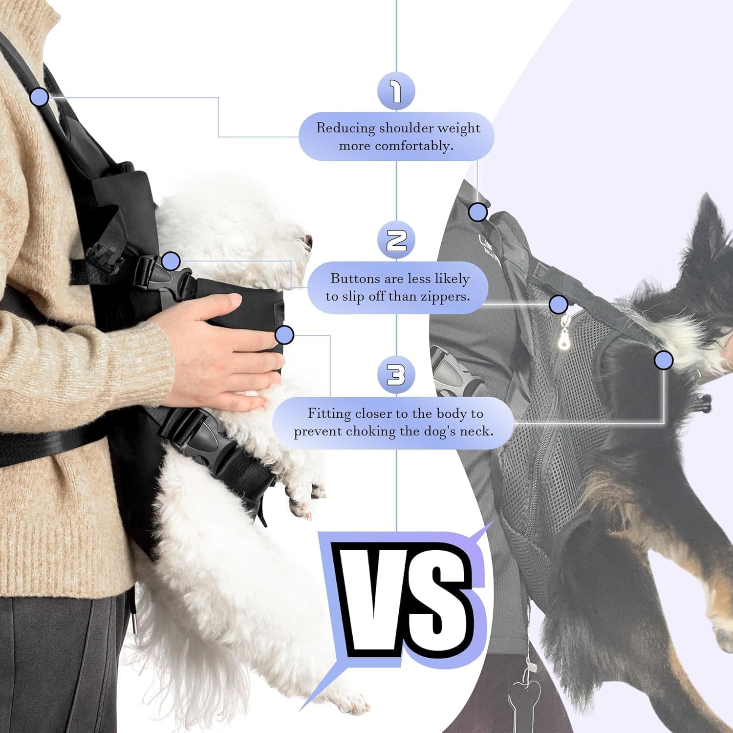 Customers find the pet carrier backpack to be of high quality, sturdy, and easy to use, with one customer noting it keeps hands free for bigger dogs. The comfort and size receive mixed feedback, with some finding it comfortable while others say it's uncomfortable, and while some say it fits well, others find it too small. The straps receive negative feedback, with customers saying the back straps are worthless. Customers appreciate the safety features, and one customer mentions the back strap provides support to offload the shoulders.