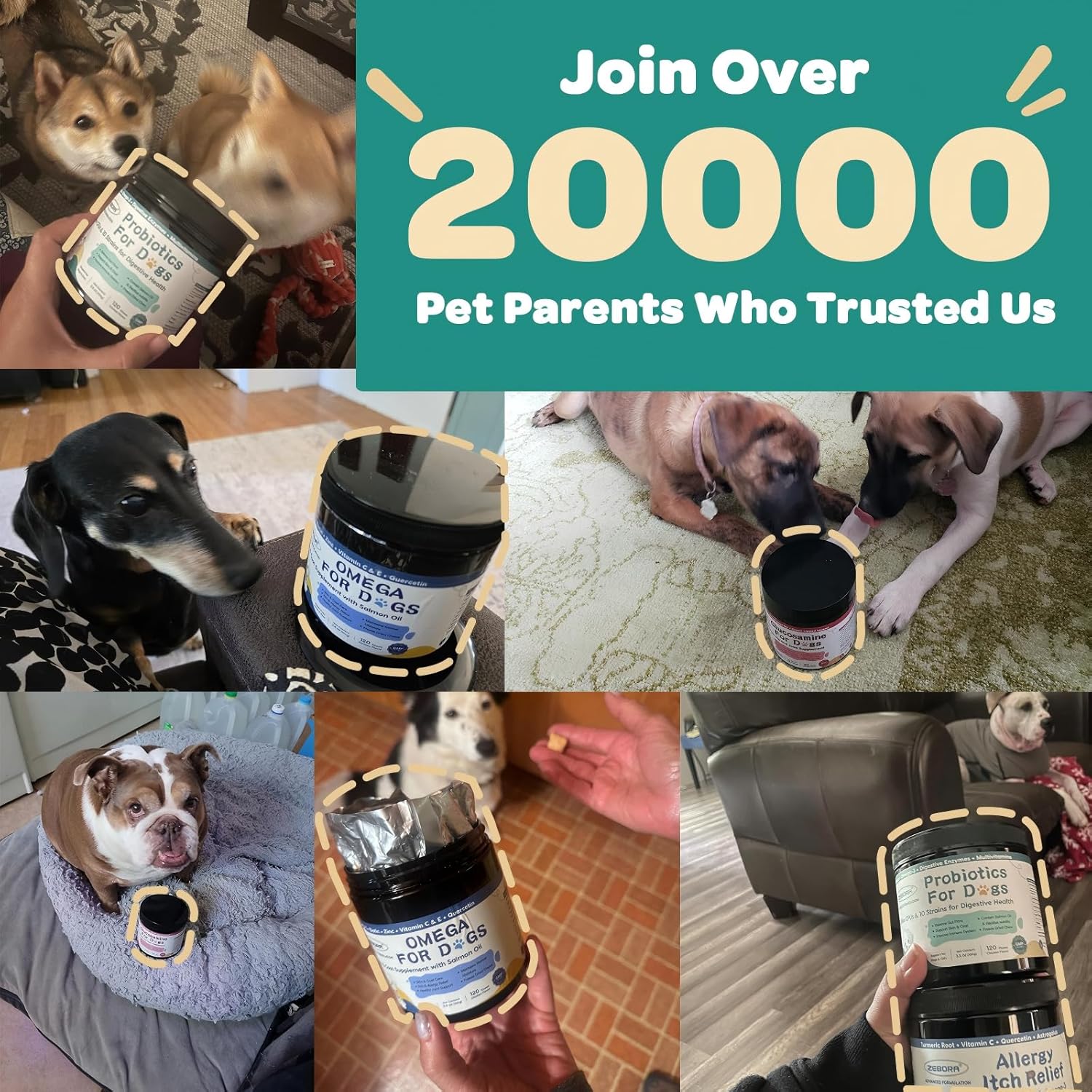 About this item Advanced Pet Probiotics: Our Allergy-Aid probiotic for dogs is expertly designed with 8 probiotics, natural botanicals, the dog probiotics for digestive health support immune health, and target the root cause of allergies for dogs with sensitive skin Support Healthy Gut & Immune Boost: Our dog probiotic combine prebiotic, digestive enzymes to support healthy digestion, and nutrient absorption. The special strains and colostrum work together to manage complete gut, skin and immune support All Natural Dog Allergy Medicine: Packed with astragalus, nettle leaf and other natural ingredients, our anti itch for dogs helps regulate histamine levels, support itchy dog skin relief, pawlicking, scratching and seasonal allergies Support Skin Comfort: Our skin and coat supplement for dogs contain Omega 3 for dogs, Vit E, biotin to help with dry skin, shedding, hot spots, while promoting a shiny, soft coat. It supports skin defense and help soothe discomfort by skin irritation More Effective Than Dog Allergy Chews: What makes our itch relief for dogs superior is that its the only powder form solution deliver stronger potency and results. Customized scoops for precise dosing can be mixed with any meal plan as a tasty meal topper Premium Quality You Can Trust: Our formula is vet-recommended and do not add useless fillers or artificial flavor. Our product is all natural, non-GMO, and GMP compliant. Give your dog the best itchy skin relief for dogs for a gentle and long lasting care › See more product details